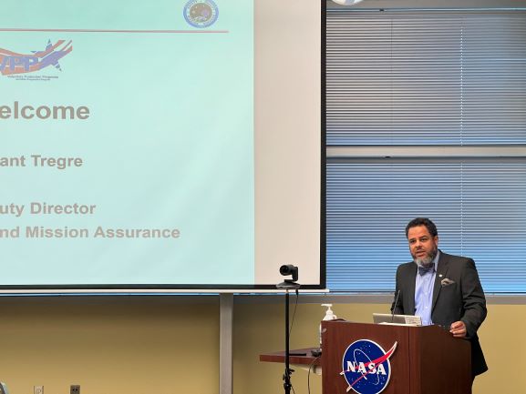 Grant Tregre, deputy director of the NASA Stennis Safety and Mission Assurance Directorate, welcomes members of the Mississippi/Louisiana Gulf Coast Voluntary Protection Program (VPP) Local Area Council Meeting to their annual meeting on Oct. 29, hosted by NASA’s Stennis Space Center at INFINITY Science Center. The regional meeting focused on how workplace safety team members can achieve and maintain consistent and effective safety and health programs for their current and potential OSHA VPP worksites across south Mississippi and Louisiana.