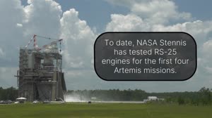 NASA conducted the 10th certification test of an RS-25 engine June 8, continuing a critical hot fire series to facilitate production of new engines for future SLS (Space Launch System) missions to deep space. Operators on the Fred Haise Test Stand at NASA’s Stennis Space Center near Bay St. Louis, Mississippi, fired the RS-25 certification engine for more than 8 minutes (500 seconds), the same amount of time the engines must fire to help launch NASA’s SLS rocket on Artemis missions to the Moon in preparation for future journeys to Mars. The engine also fired as high as 113% power during the test, exceeding the 111% power level needed during launch and providing a margin of operational performance safety. NASA plans two additional tests to certify production of new RS-25 engines by lead contractor Aerojet Rocketdyne. Four RS-25 engines fire simultaneously to help launch each SLS rocket, producing up to 2 million pounds of combined thrust.