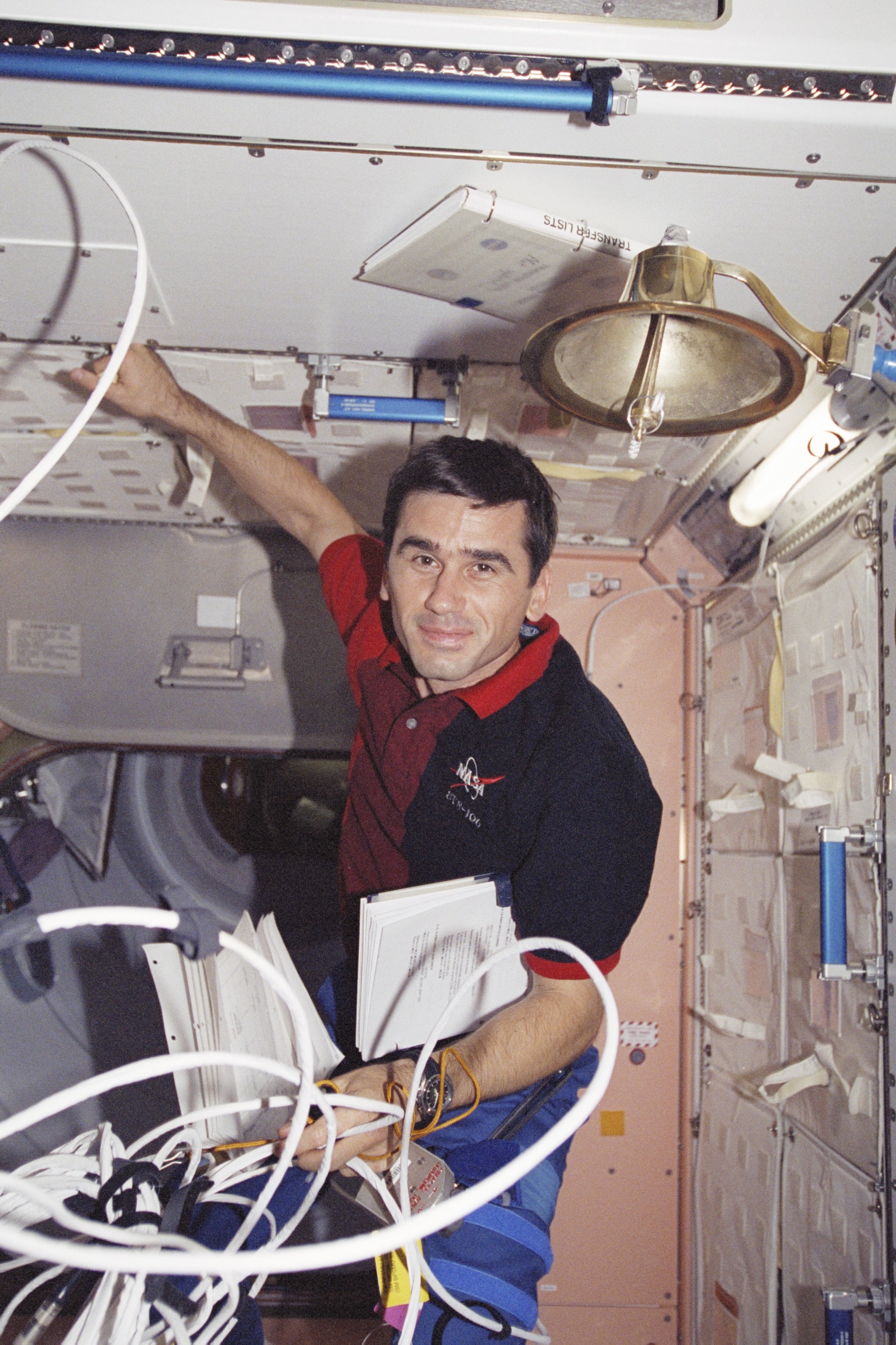 STS106-319-022 (8-20 September 2000)--- Cosmonaut Yuri I. Malenchenko, mission specialist representing the Russian Aviation and Space Agency, works aboard the U.S.-built Unity node on the International Space Station (ISS).