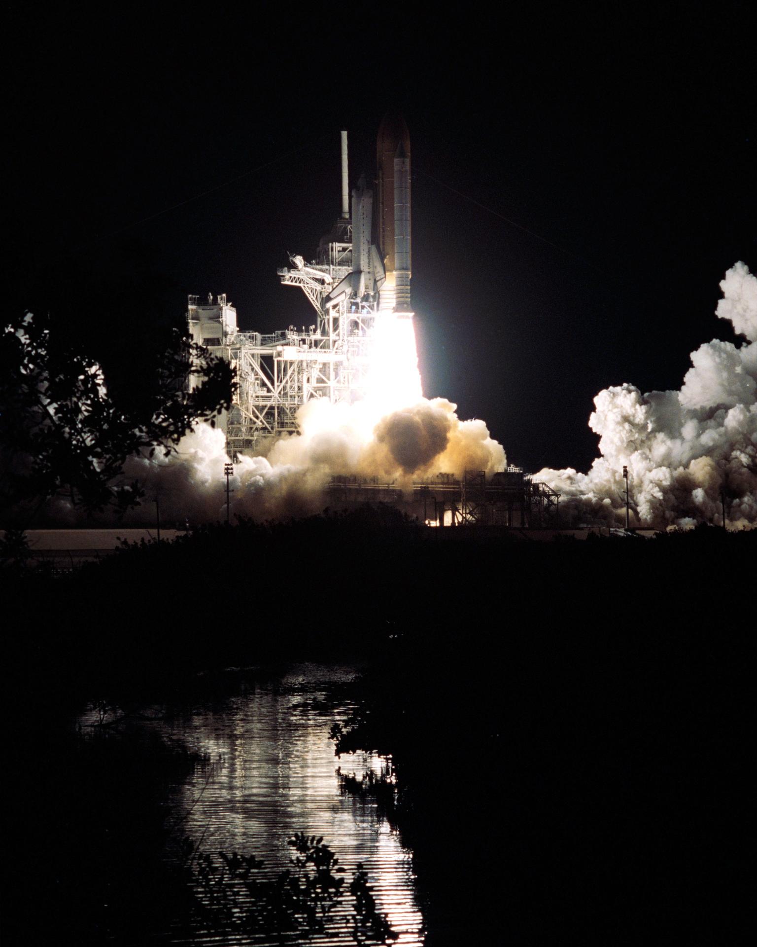 STS109-S-006 (1 March 2002) --- The Space Shuttle Columbia begins its 27th flight in the pre-dawn hours from Launch Pad 39A. Liftoff for STS-109 occurred at 6:22:02:08 a.m., EST (11:22:02:08 GMT). The goal of the mission is the maintenance and upgrade of the Hubble Space Telescope, to be carried out in five space walks. On board the spacecraft were astronauts Scott D. Altman, Duane G. Carey, Nancy J. Currie, John M. Grunsfeld, James H. Newman, Richard M. Linnehan and Michael J. Massimino.