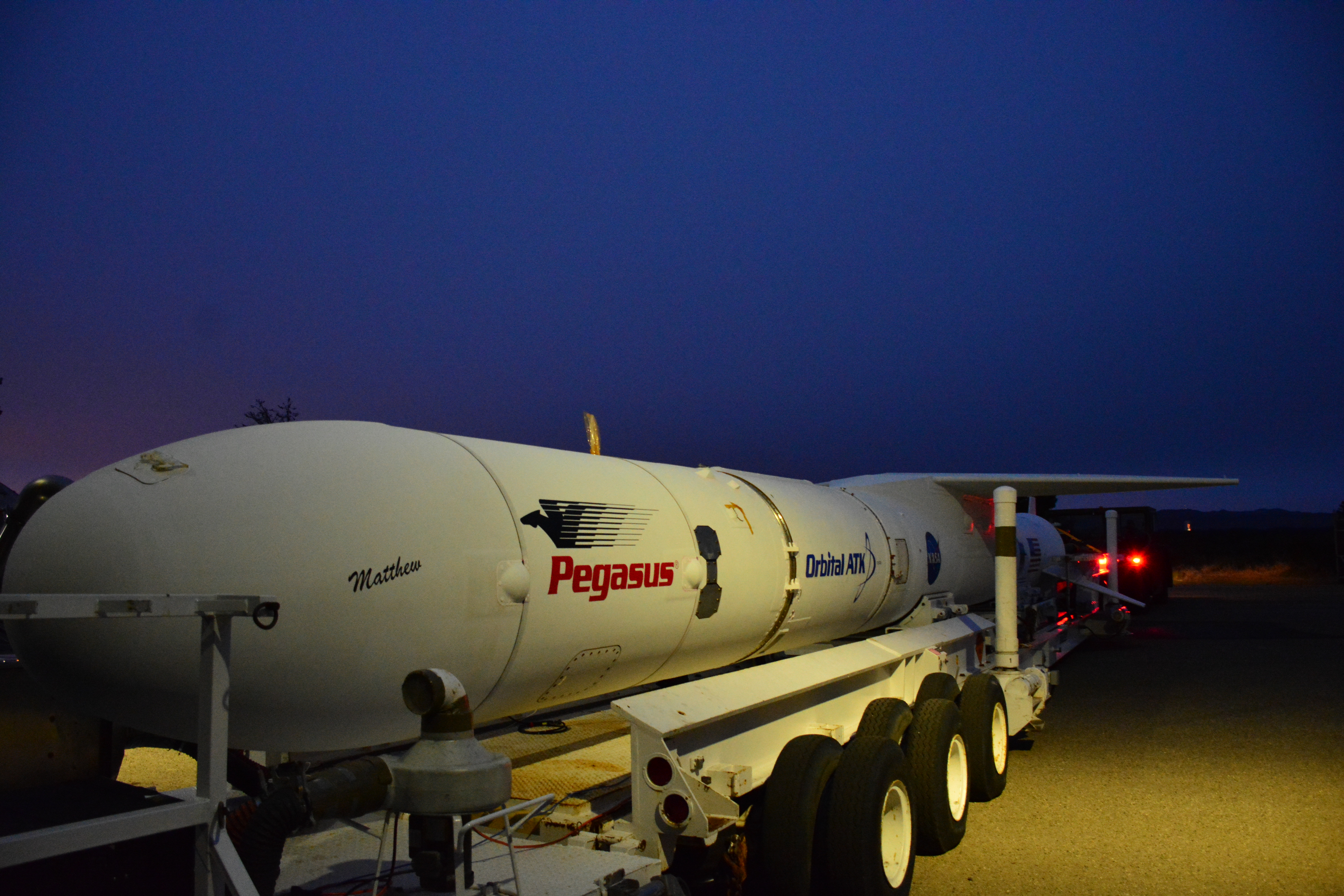 At Vandenberg Air Force Base in California, an Orbital ATK Pegasus XL rocket is transported from the hangar at Building 1555 to be mated to L-1011 carrier aircraft near Vandenberg's runway. On board Pegasus are eight NASA Cyclone Global Navigation Satellite System, or CYGNSS, spacecraft. When preparations are competed at Vandenberg, the L-1011/Pegasus XL combination will be flown to NASA’s Kennedy Space Center in Florida. On Dec. 12, 2016, the carrier aircraft is scheduled to take off from the Skid Strip at Cape Canaveral Air Force Station and CYGNSS will launch on the Pegasus XL rocket with the L-1011 flying off shore. CYGNSS satellites will make frequent and accurate measurements of ocean surface winds throughout the life cycle of tropical storms and hurricanes. The data that CYGNSS provides will enable scientists to probe key air-sea interaction processes that take place near the core of storms, which are rapidly changing and play a critical role in the beginning and intensification of hurricanes.