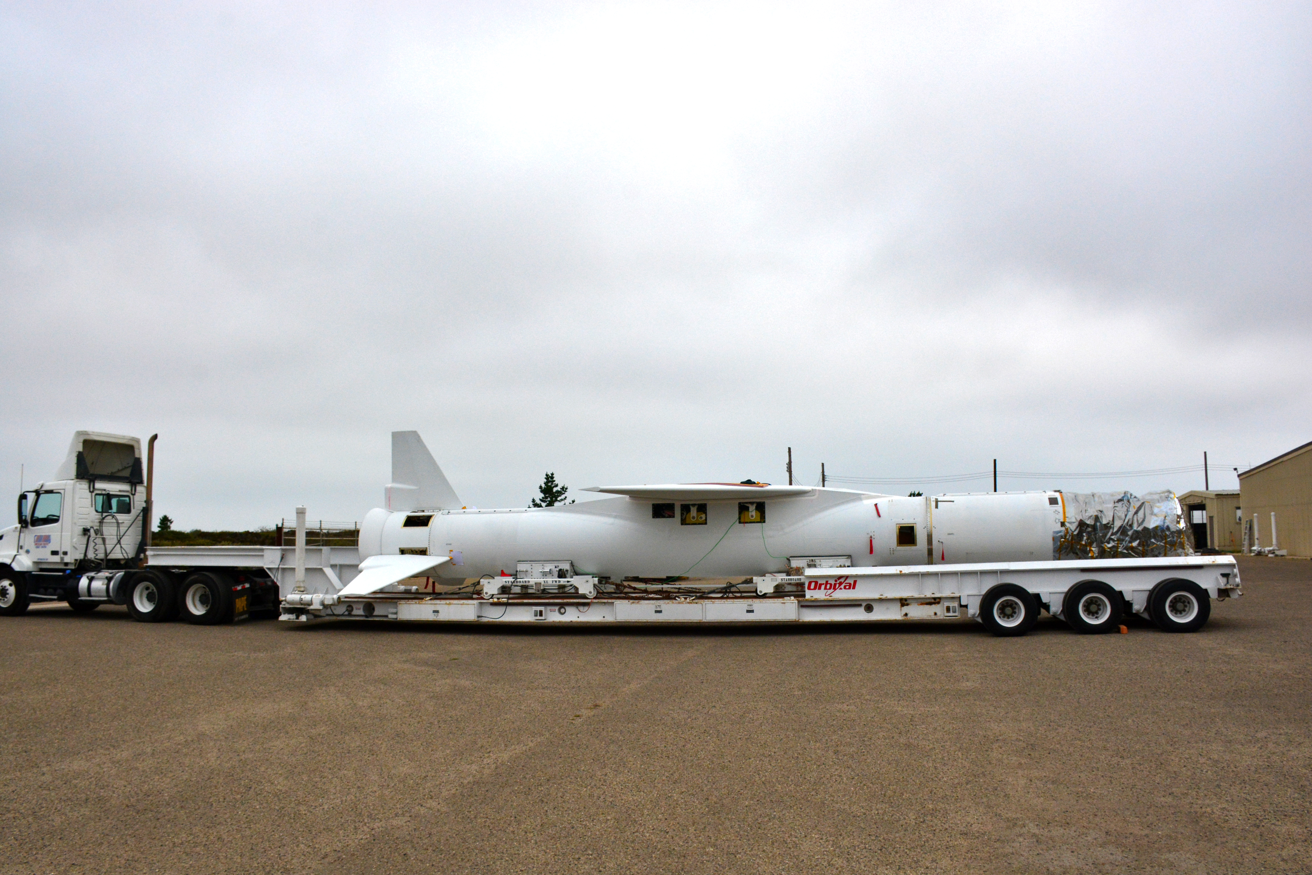 The Orbital ATK Pegasus XL rocket, with NASA's Ionospheric Connection Explorer (ICON) spacecraft attached, is moved on an assembly integration trailer from one high bay to another Aug. 23, 2017, at Building 1555 at Vandenberg Air Force Base in California. The Pegasus rocket is being prepared for the ICON mission. The explorer will launch on June 15, 2018, from Kwajalein Atoll in the Marshall Islands (June 14 in the continental United States) on the Pegasus XL, which is attached to the company's L-1011 Stargazer aircraft. ICON will study the frontier of space - the dynamic zone high in Earth's atmosphere where terrestrial weather from below meets space weather above. The explorer will help determine the physics of Earth's space environment and pave the way for mitigating its effects on our technology and communications systems.
