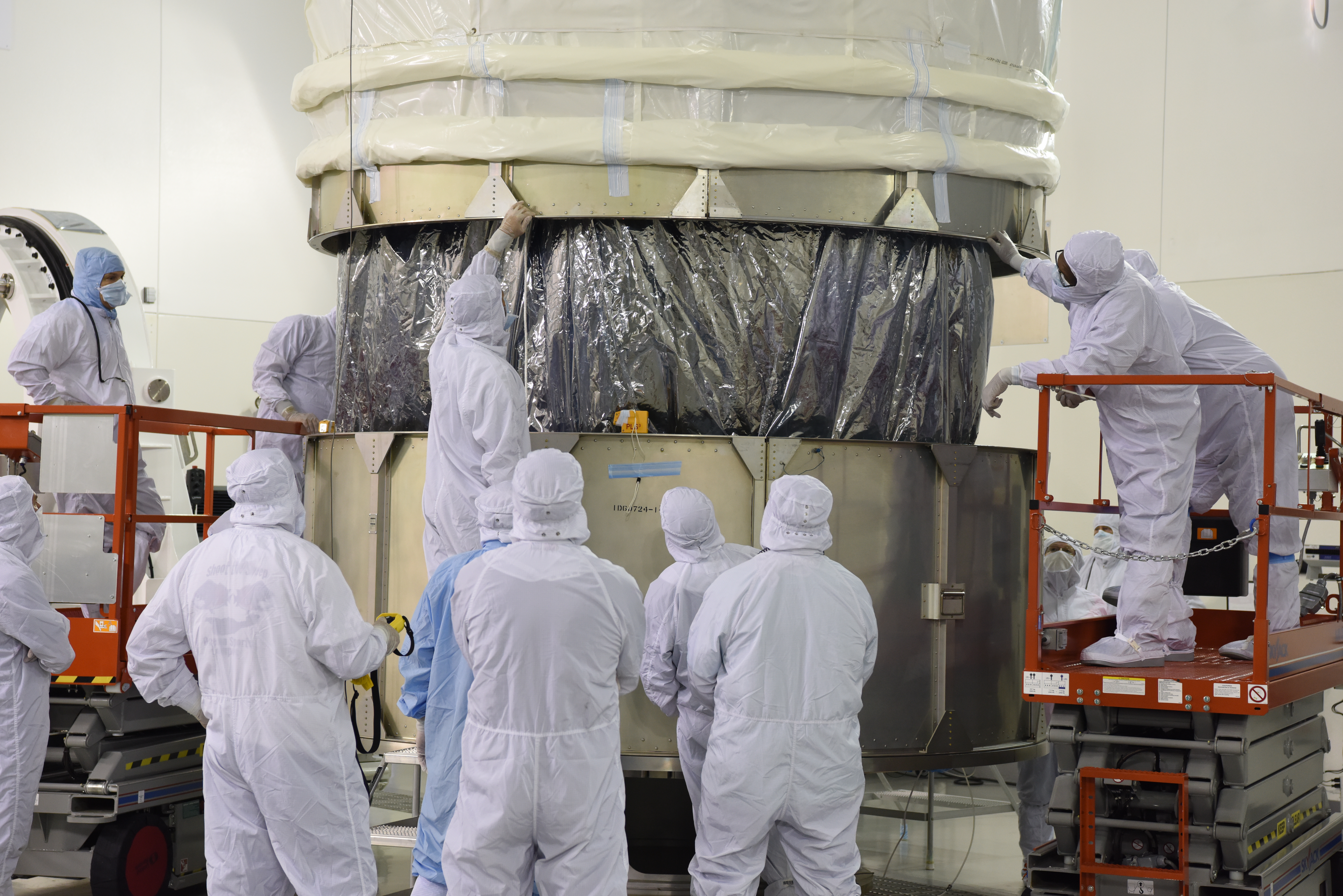 In the Astrotech Processing Facility at Vandenberg Air Force Base in California, technicians and engineers place the Joint Polar Satellite System-1, or JPSS-1, spacecraft in a protective container. It then will be mounted on a transport trailer for its move to Space Launch Complex 2. At the pad, JPSS-1 will be lifted for mating atop a United Launch Alliance Delta II rocket. Built by Ball Aerospace and Technologies Corp. of Boulder, Colorado, JPSS is the first in a series four next-generation environmental satellites in a collaborative program between the NOAA and NASA. Liftoff is scheduled to take place from Vandenberg's Space Launch Complex 2.
