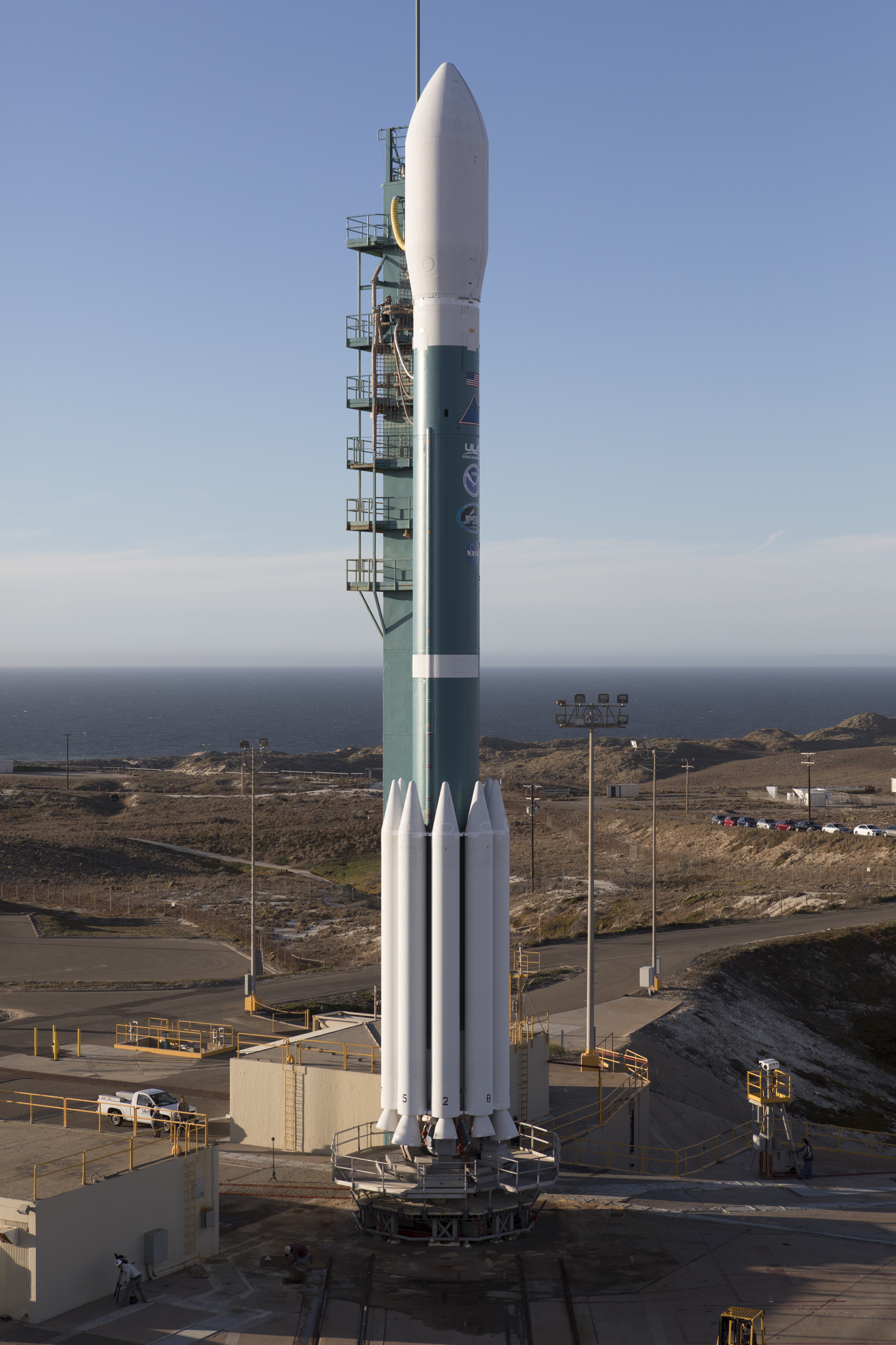 At Vandenberg Air Force Base in California, the gantry rolls back at Space Launch Complex 2 in preparation for the liftoff of the Joint Polar Satellite System-1, or JPSS-1, spacecraft. The United Launch Alliance Delta II rocket now is poised to boost the satellite to a polar orbit. Built by Ball Aerospace and Technologies Corp. of Boulder, Colorado, JPSS is the first in a series four next-generation environmental satellites in a collaborative program between NOAA and NASA. The satellite is scheduled to liftoff at 1:47 a.m. PST (4:47 a.m. EST), on Nov. 14, 2017.