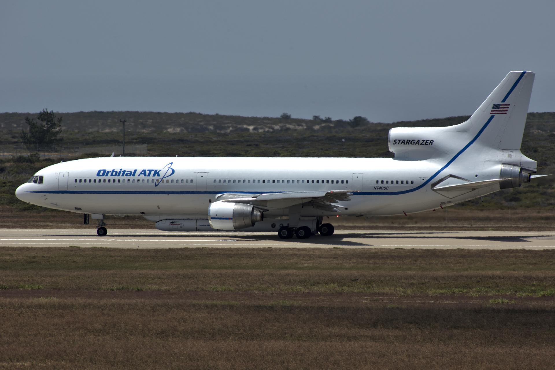 Northrop Grumman's L-1011 Stargazer prepares for takeoff June 6, 2018, from the hot pad at Vandenberg Air Force Base in California. The company's Pegasus XL rocket, containing NASA's Ionospheric Connection Explorer (ICON), is attached beneath the aircraft. The explorer will launch on June 15, 2018, from Kwajalein Atoll in the Marshall Islands (June 14 in the continental United States). ICON will study the frontier of space - the dynamic zone high in Earth's atmosphere where terrestrial weather from below meets space weather above. The explorer will help determine the physics of Earth's space environment and pave the way for mitigating its effects on our technology, communications systems and society.