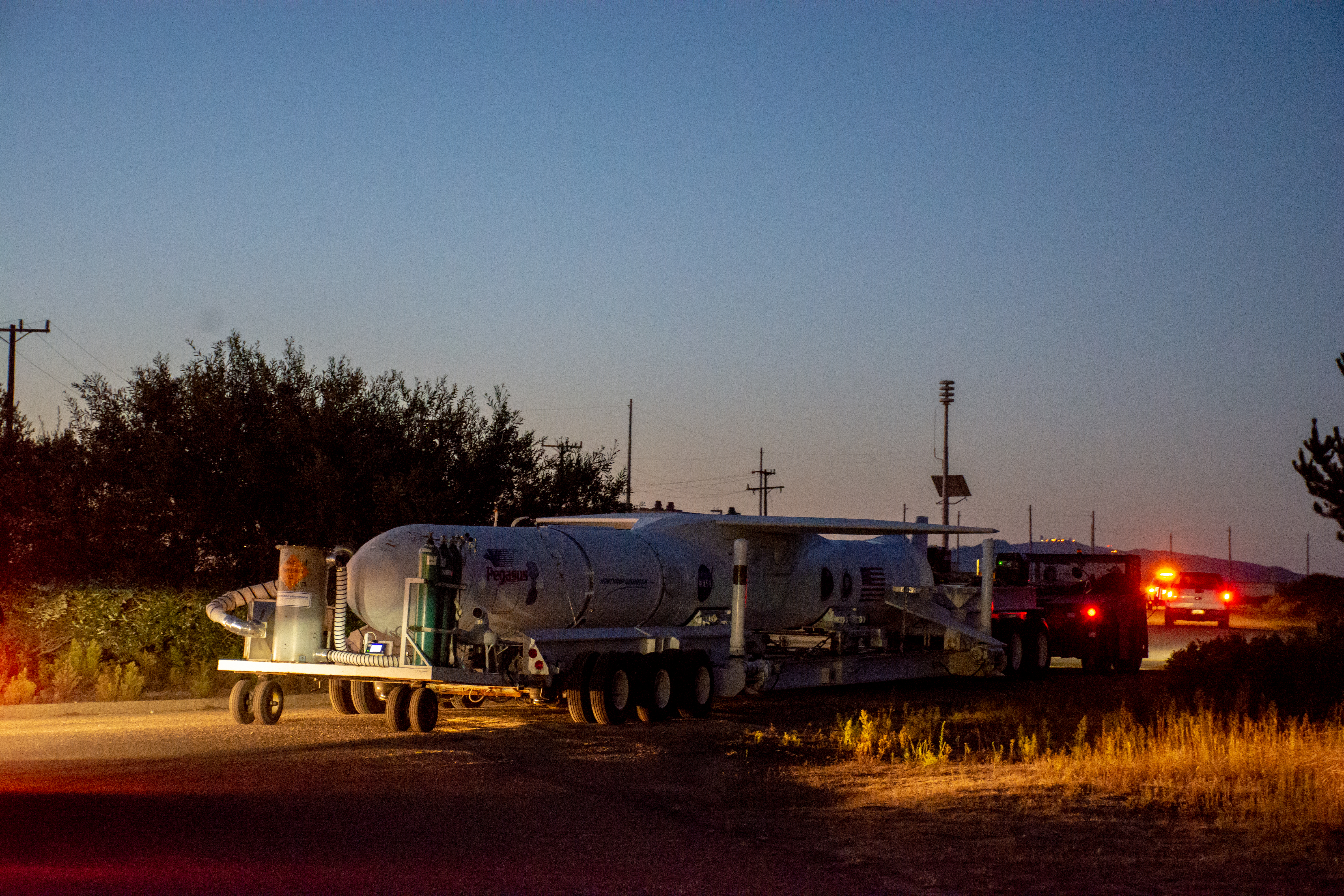 The Northrop Grumman Pegasus XL rocket, with NASA's Ionospheric Connection Explorer (ICON) secured in its payload fairing, rolls out to the runway at Vandenberg Air Force Base in California on Sept. 25, 2019. The Pegasus XL rocket will be attached beneath the company's L-1011 Stargazer aircraft for the flight to Cape Canaveral Air Force Station (CCAFS) in Florida. ICON will launch from the Skid Strip at CCAFS. Launch is scheduled for Oct. 10, 2019. ICON will study the frontier of space - the dynamic zone high in Earth's atmosphere where terrestrial weather from below meets space weather above. The explorer will help determine the physics of Earth's space environment and pave the way for mitigating its effects on our technology and communications systems.