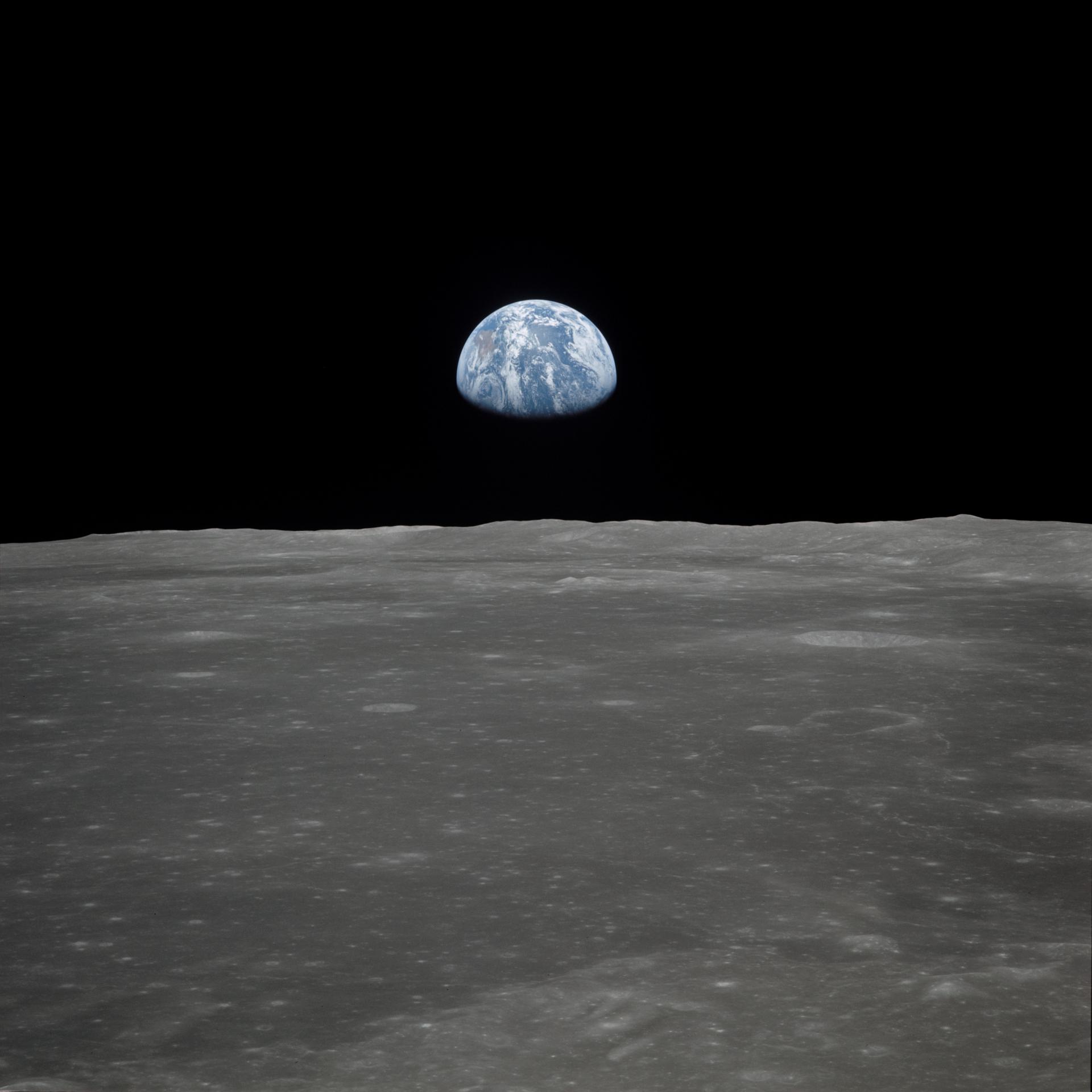 AS11-44-6552 (16-24 July 1969) --- This view of Earth rising over the moon's horizon was taken from the Apollo spacecraft. The lunar terrain pictured is in the area of Smyth's Sea on the nearside. Coordinates of the center of the terrain are 85 degrees east longitude and 3 degrees north latitude. While astronaut Neil A. Armstrong, commander; and Edwin E. Aldrin Jr., lunar module pilot, descended in the Lunar Module (LM) "Eagle" to explore the Sea of Tranquility region of the moon, astronaut Michael Collins remained with the Command and Service Modules (CSM) "Columbia" in lunar orbit.