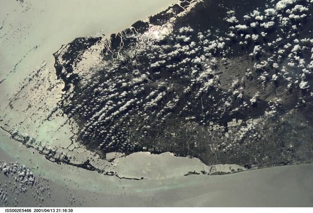 ISS002-E-5466 (13 April 2001) --- From the International Space Station (ISS), an Expedition Two crew member photographed southern Florida, including Dade County with Miami and Miami Beach; Everglades National Park; Big Cypress National Reserve; and the Florida Keys and many other recognizable areas. The crew member, using a digital still camera on this same pass, also recorded imagery of the Lake Okeechobee area, just north of the area represented in this frame.