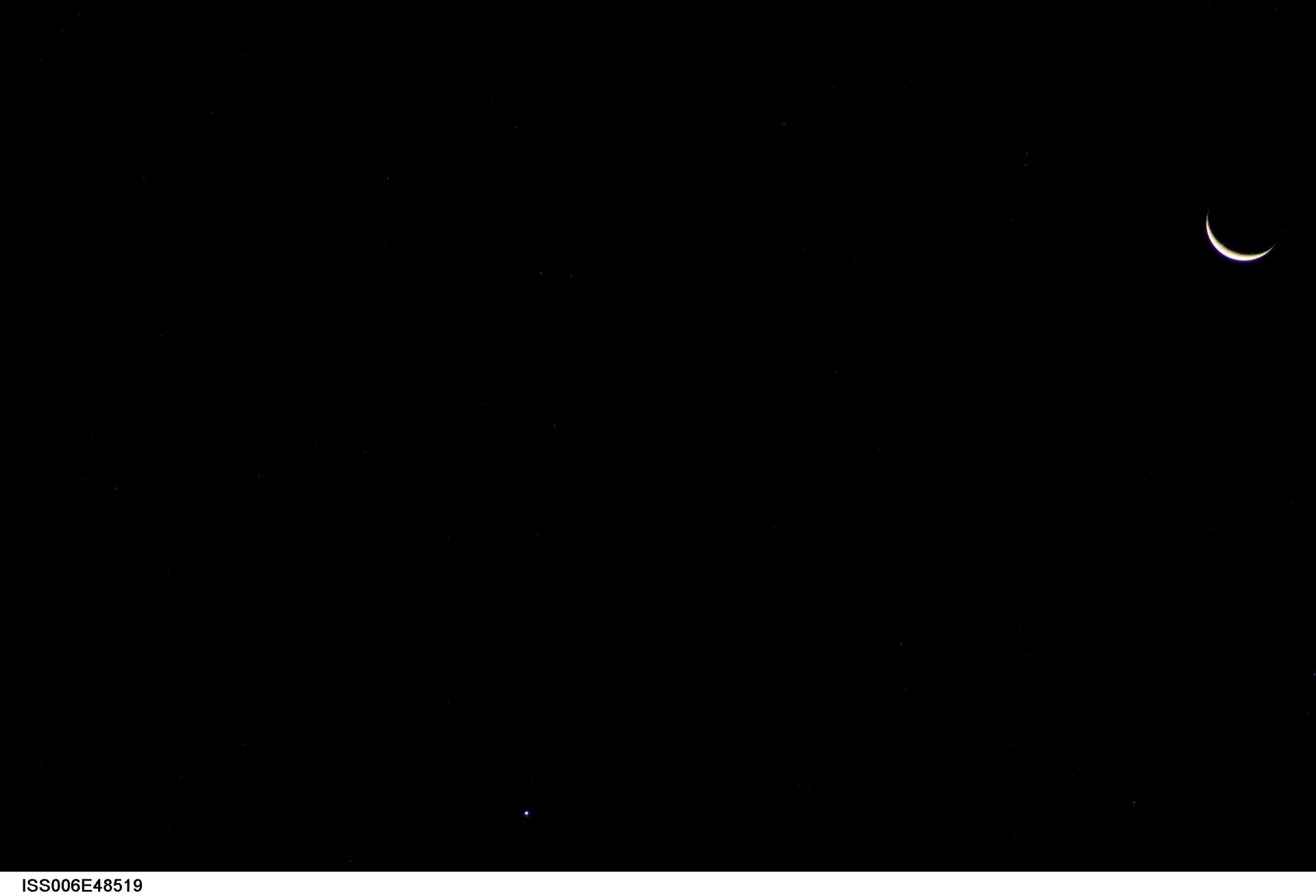 ISS006-E-48519 (28 April 2003) --- A crescent moon was photographed by an Expedition Six crewmember onboard the International Space Station (ISS).