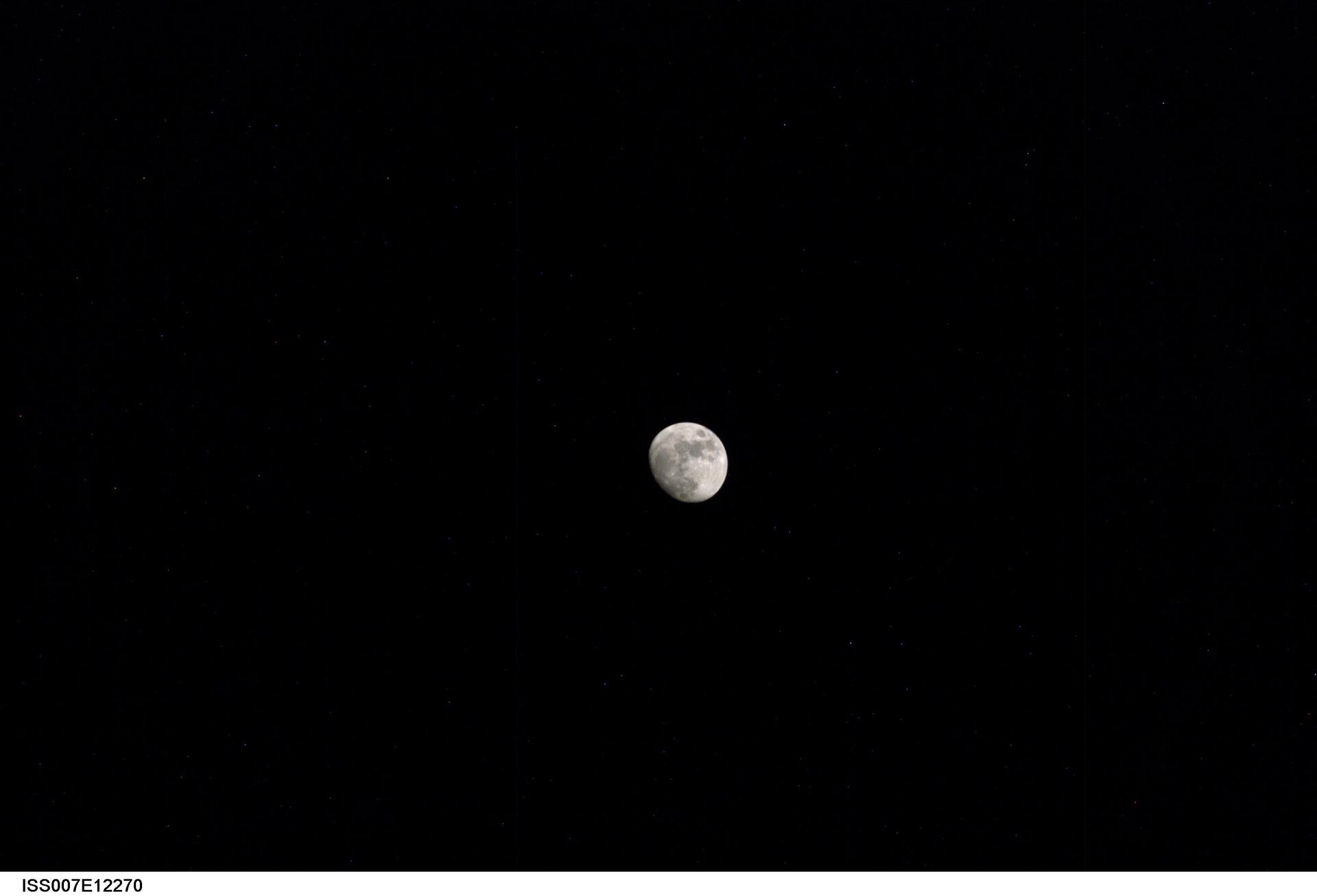 ISS007-E-12270 (9 August 2003) --- View of a gibbous Moon photographed by an Expedition 7 crewmember onboard the International Space Station (ISS).