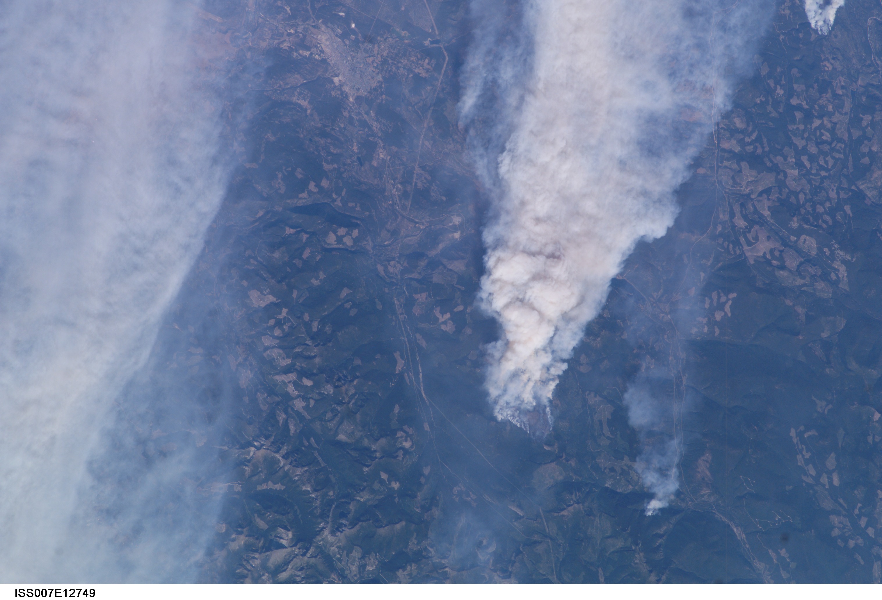 ISS007-E-12749 (14 August 2003) --- This view of forest fires in lower British Columbia, Canada was taken by one of the Expedition 7 crewmembers onboard the International Space Station (ISS).