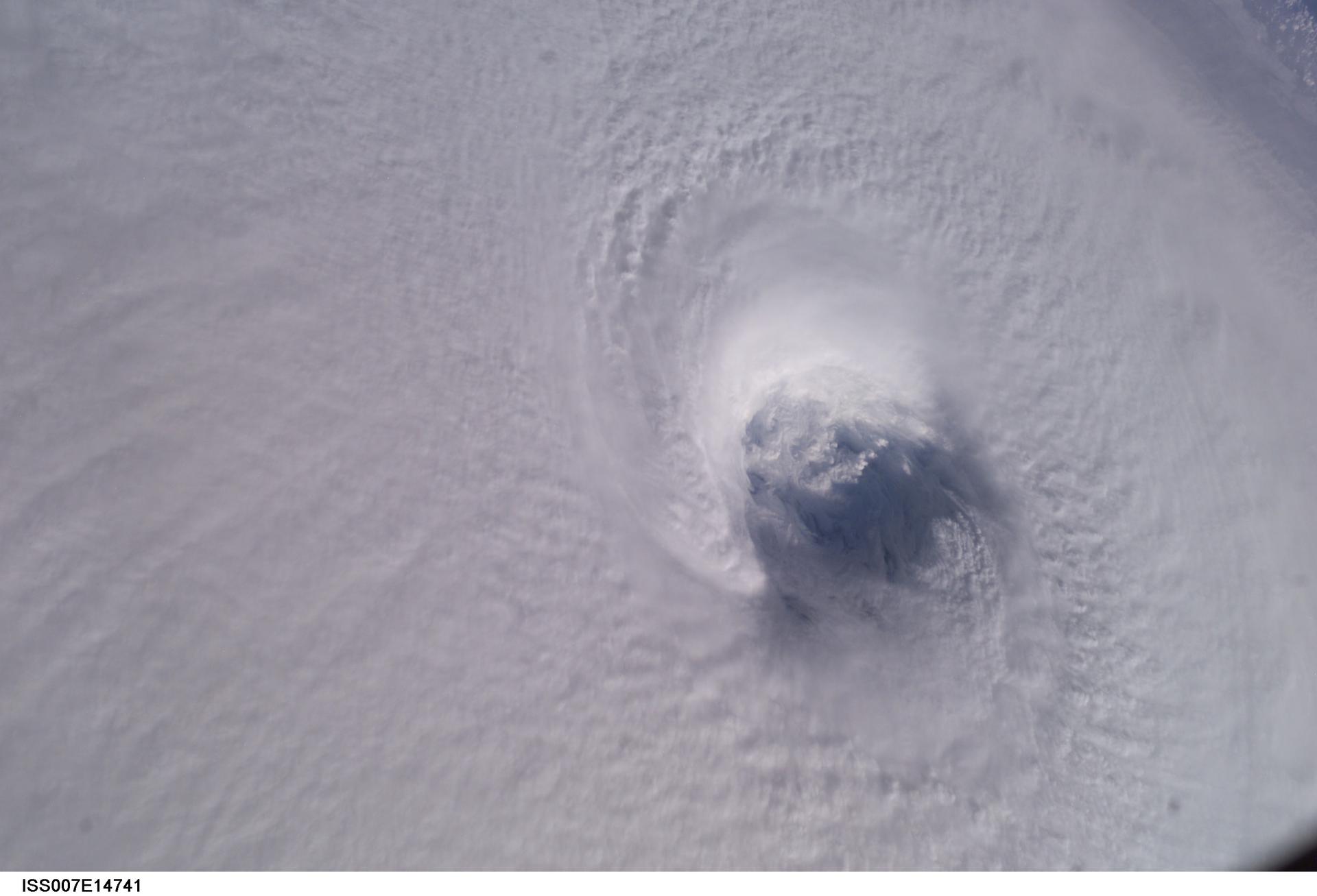 ISS007-E-14741 (13 September 2003) --- This close-up view of the eye of Hurricane Isabel was taken by one of the Expedition 7 crewmembers onboard the International Space Station (ISS). At the time this photo was taken, Isabel had reformed to a Category 5 storm, packing winds of 160 miles per hour.
