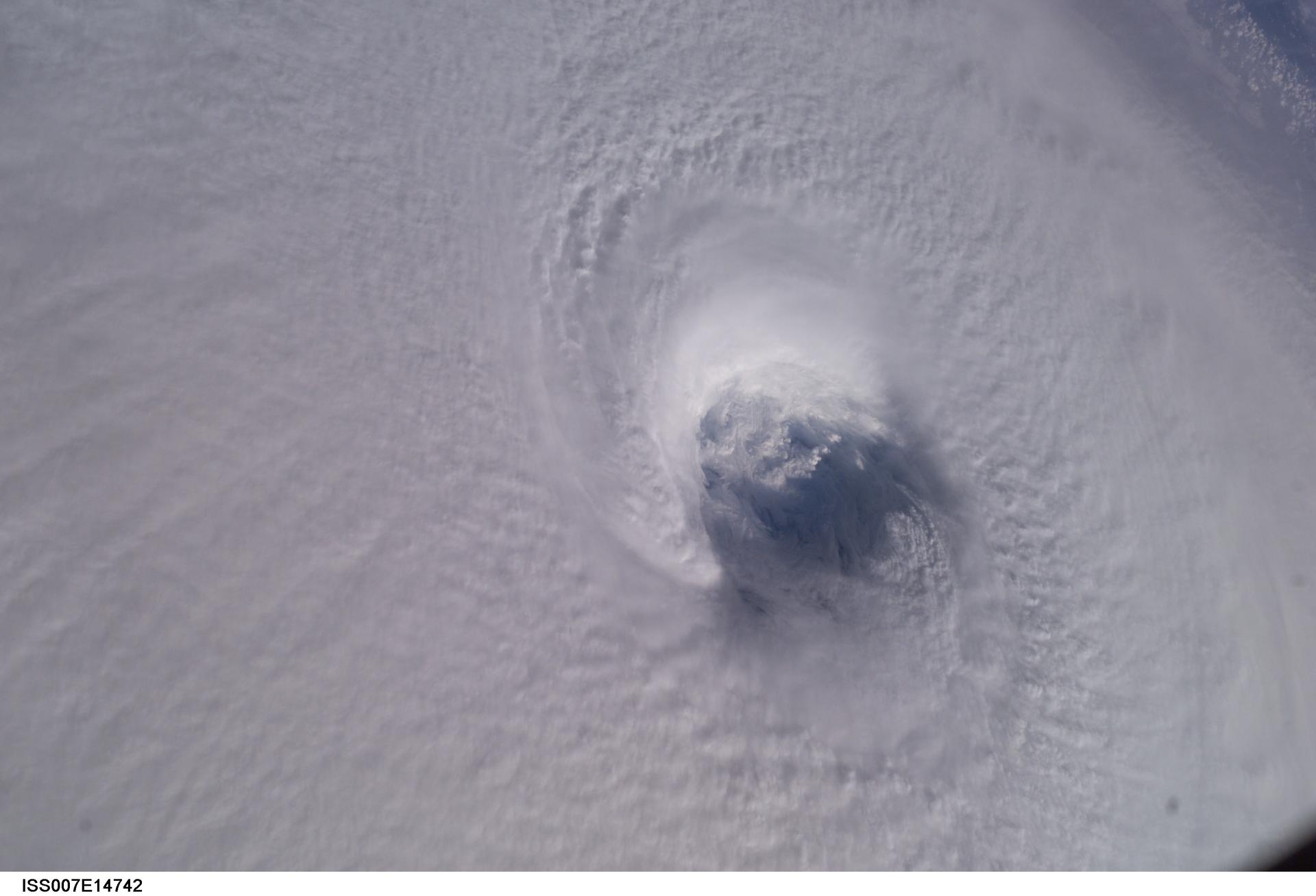 ISS007-E-14742 (13 September 2003) --- This close-up view of the eye of Hurricane Isabel was taken by one of the Expedition 7 crewmembers onboard the International Space Station (ISS). At the time this photo was taken, Isabel had reformed to a Category 5 storm, packing winds of 160 miles per hour.