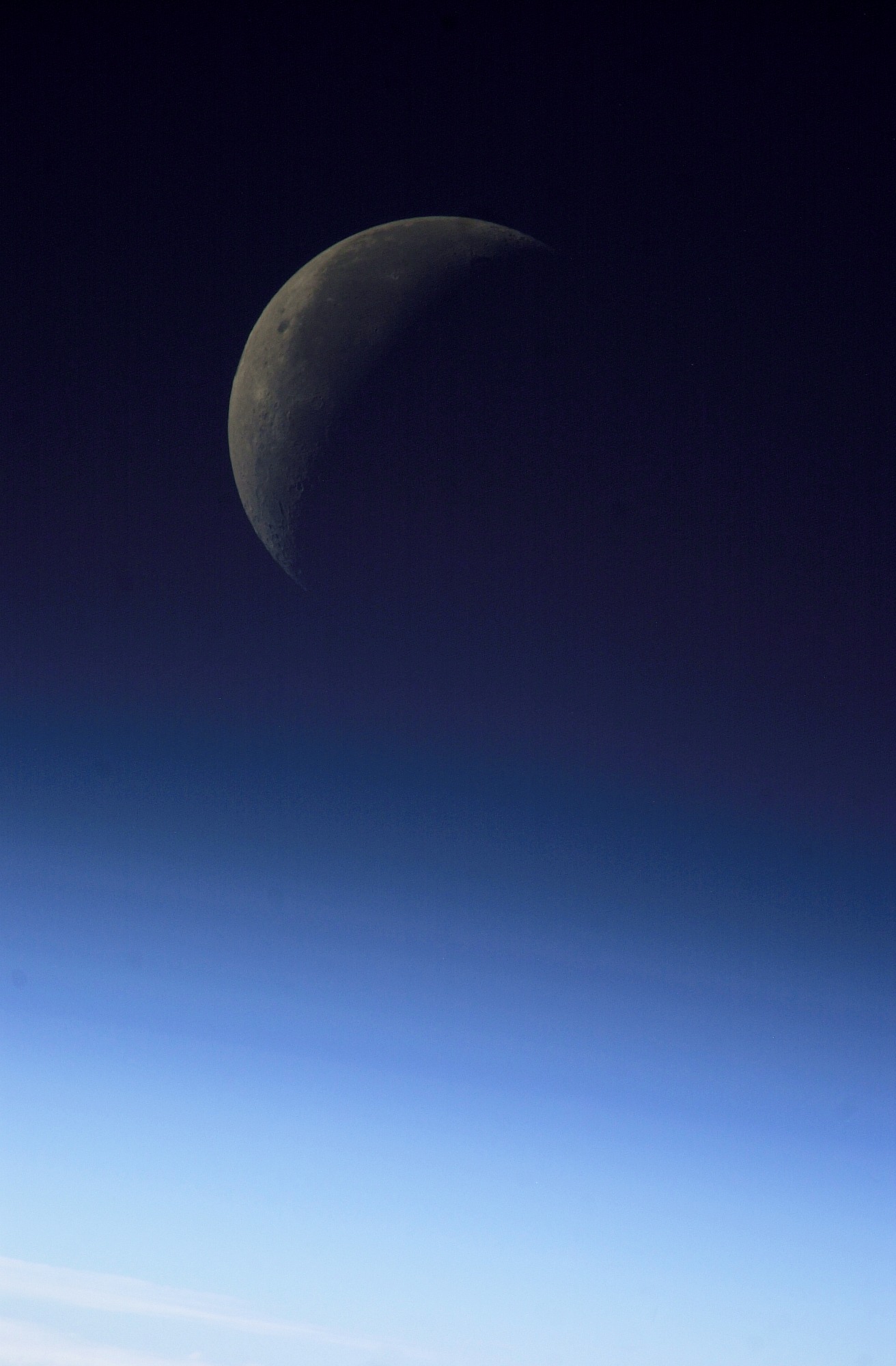 ISS008-E-08949 (December 2003) --- A partial moon is visible in this view of Earth’s horizon and airglow, photographed by an Expedition 8 crewmember on the International Space Station (ISS).