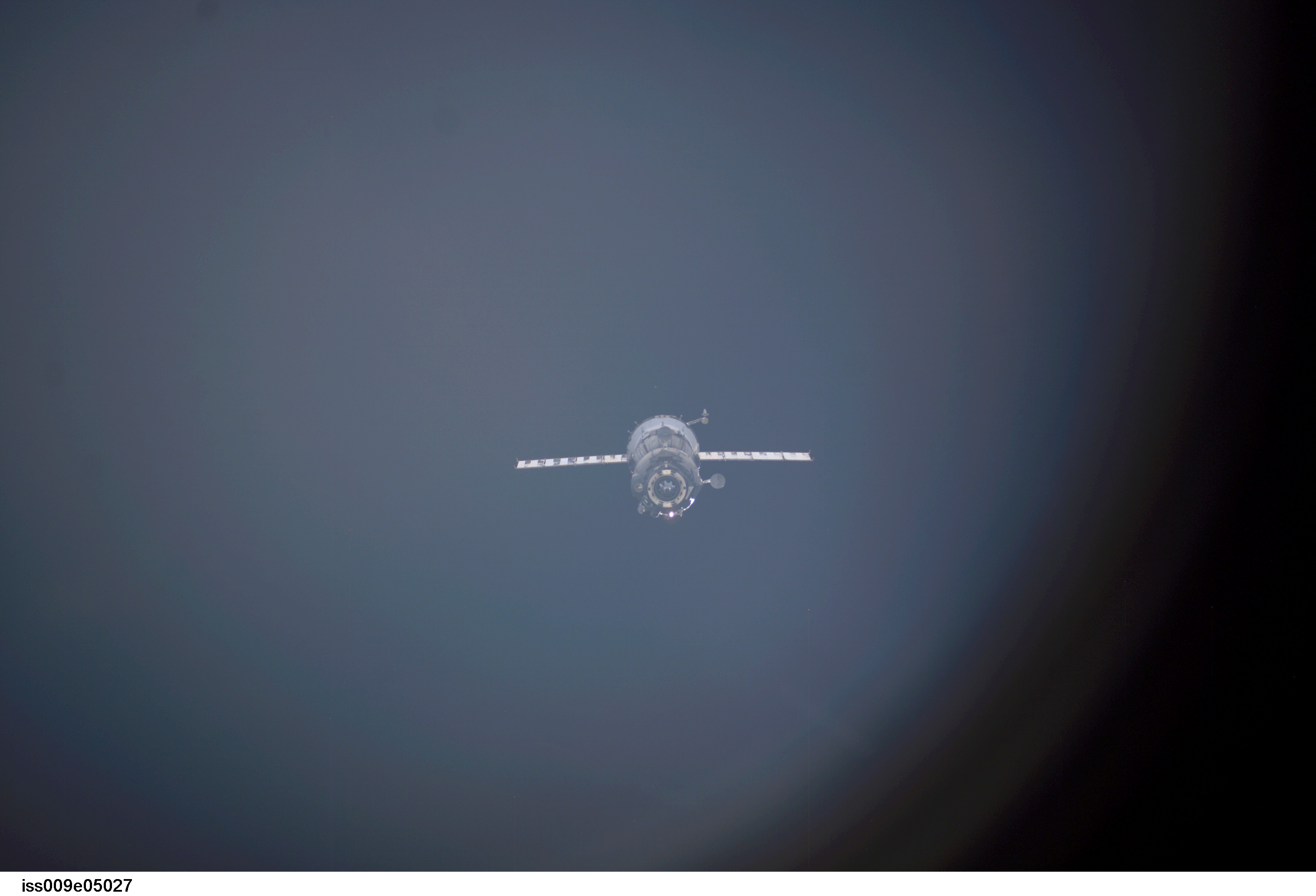 ISS009-E-05027 (29 April 2004) --- As seen through a window on the International Space Station (ISS), the Soyuz TMA-3 capsule departs from the Station carrying astronaut C. Michael Foale, Expedition 8 commander and NASA ISS science officer; cosmonaut Alexander Y. Kaleri, flight engineer representing Russia’s Federal Space Agency; and European Space Agency (ESA) astronaut Andre Kuipers of the Netherlands. Undocking occurred at 3:52 p.m. (CDT) on April 29.