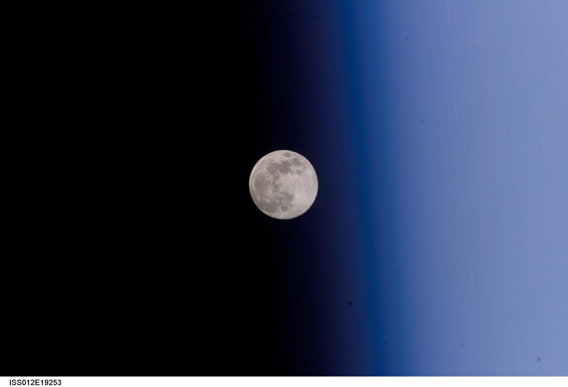 ISS012-E-19253 (12 Feb. 2006) --- A full moon is visible in this view above Earth’s horizon and airglow, photographed by an Expedition 12 crewmember on the International Space Station.