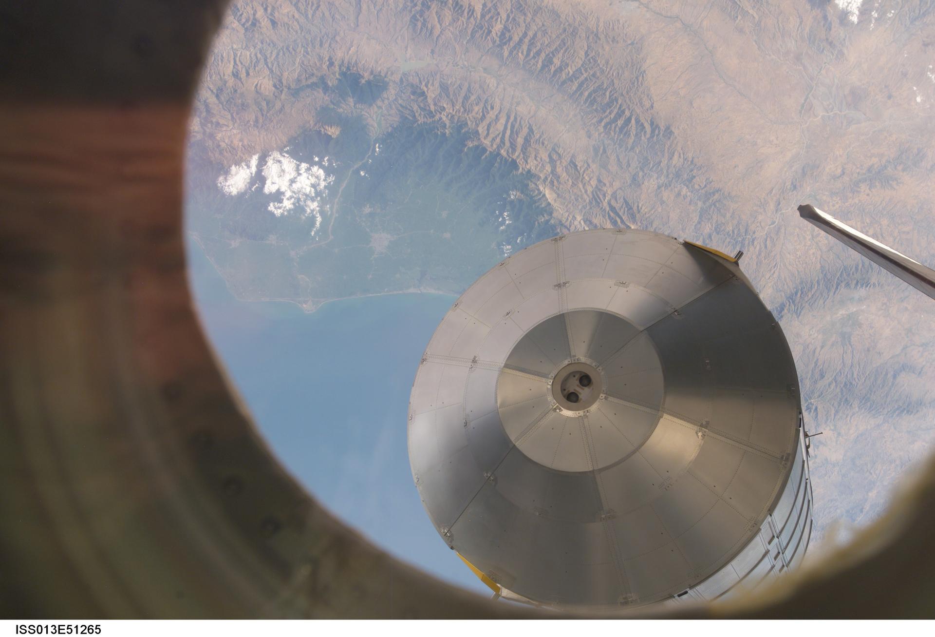 ISS013-E-51265 (14 July 2006) --- Canadarm2 or the Space Station Remote Manipulator System (SSRMS) arm (out of frame) grasps the Italian-built Multi-Purpose Logistics Module Leonardo to place it back in Discovery's cargo bay. On the other end of the arm, inside the shirt sleeve environment of the Destiny laboratory on the International Space Station, astronauts Stephanie D. Wilson and Lisa M. Nowak, STS-121 mission specialists, were in control of the transfer. The MPLM was being moved from its temporary parking place on the station's Unity node to the payload bay of Discovery for the return trip to Earth.