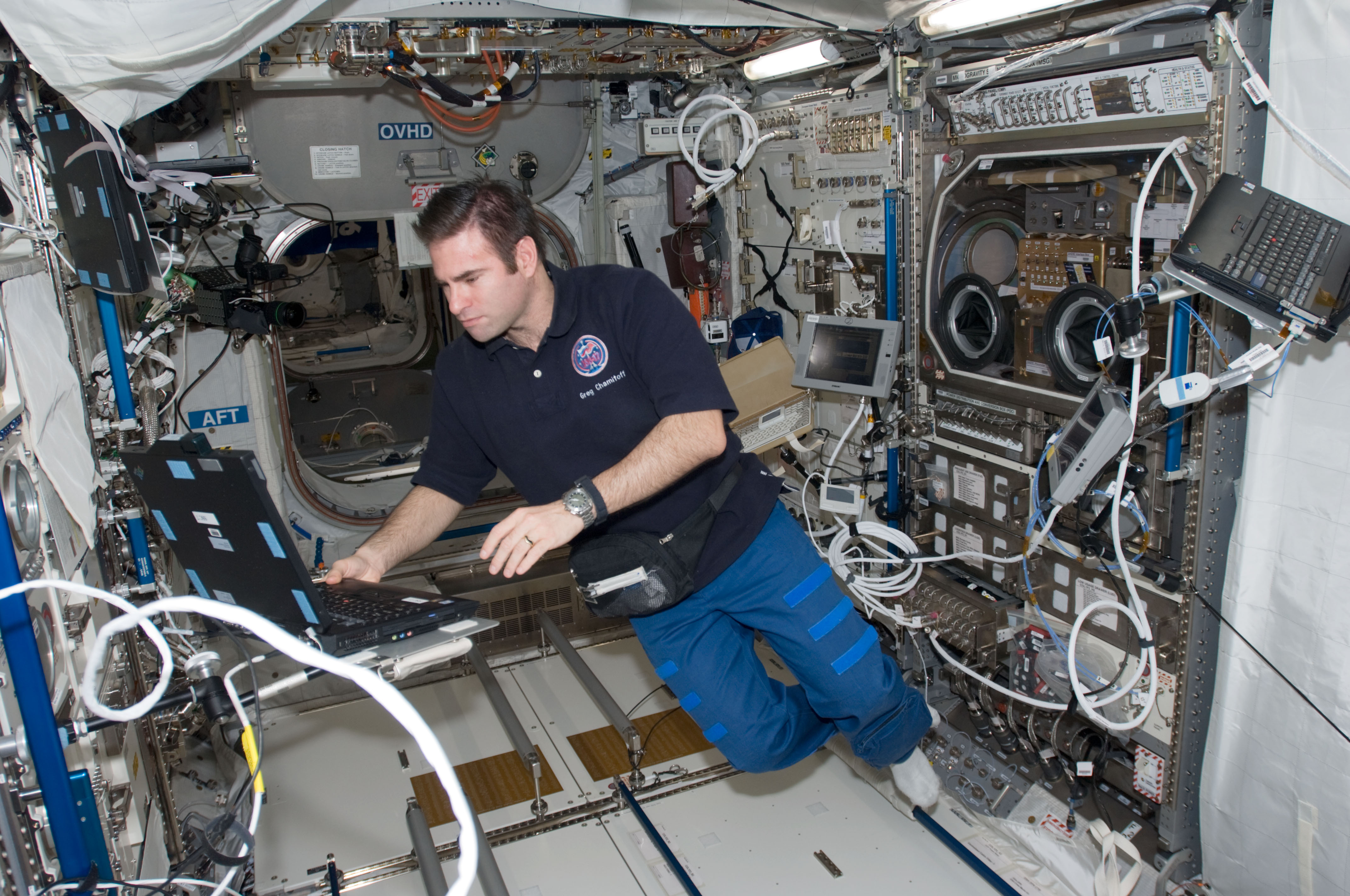ISS017-E-014001 (23 Aug. 2008) --- Astronaut Greg Chamitoff, Expedition 17 flight engineer, works with the Microgravity Sciences Glovebox and the Commercial Generic Bioprocessing Apparatus in the Columbus laboratory on the International Space Station.