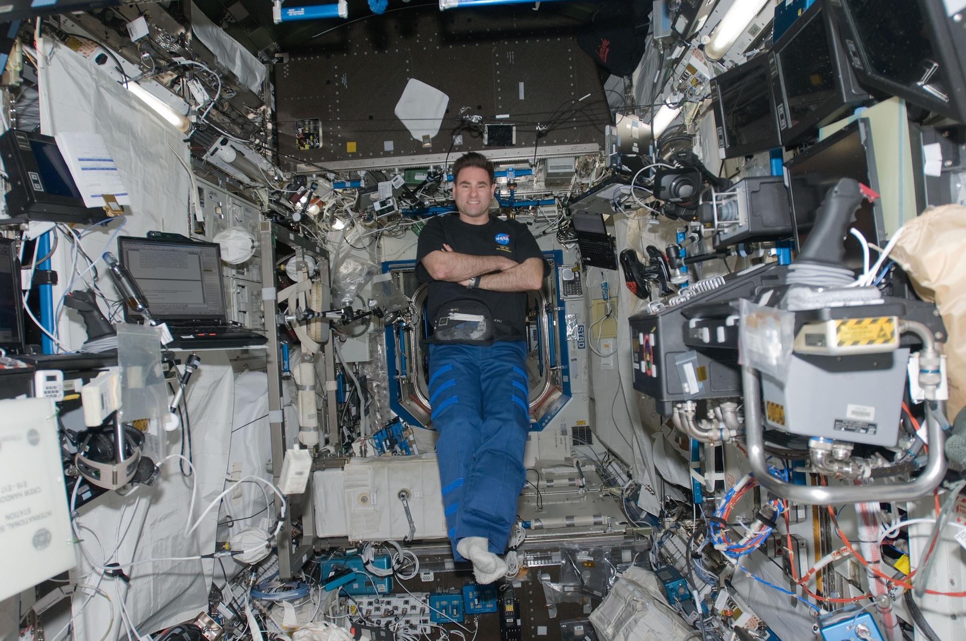 ISS017-E-019013 (13 Oct. 2008) --- NASA astronaut Greg Chamitoff, Expedition 17 flight engineer, poses for a photo while floating in the Destiny laboratory of the International Space Station.