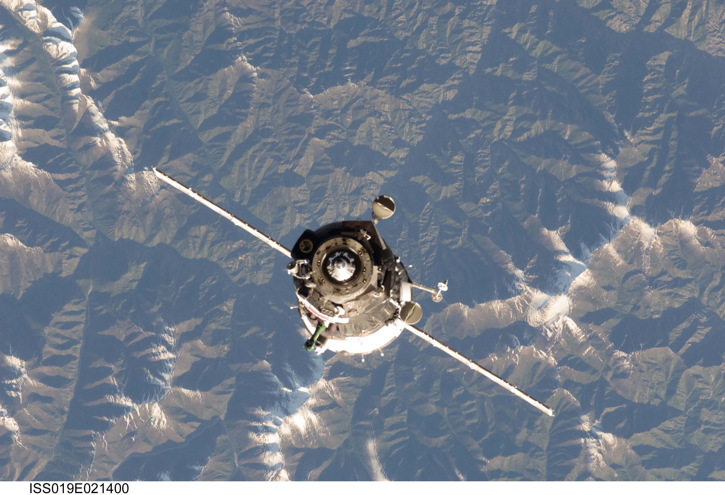 ISS019-E-021400 (29 May 2009) --- The Soyuz TMA-15 spacecraft approaches the International Space Station, carrying cosmonaut Roman Romanenko, European Space Agency astronaut Frank De Winne and Canadian Space Agency astronaut Robert Thirsk, all Expedition 20 flight engineers. The crew launched from the Baikonur Cosmodrome in Kazakhstan at 5:34 a.m. (CDT), May 27, 2009, and arrived at the station at 7:34 a.m. (CDT) on May 29. Later that day, hatches opened between the two spacecraft, beginning Expedition 20 and six-person crew operations.