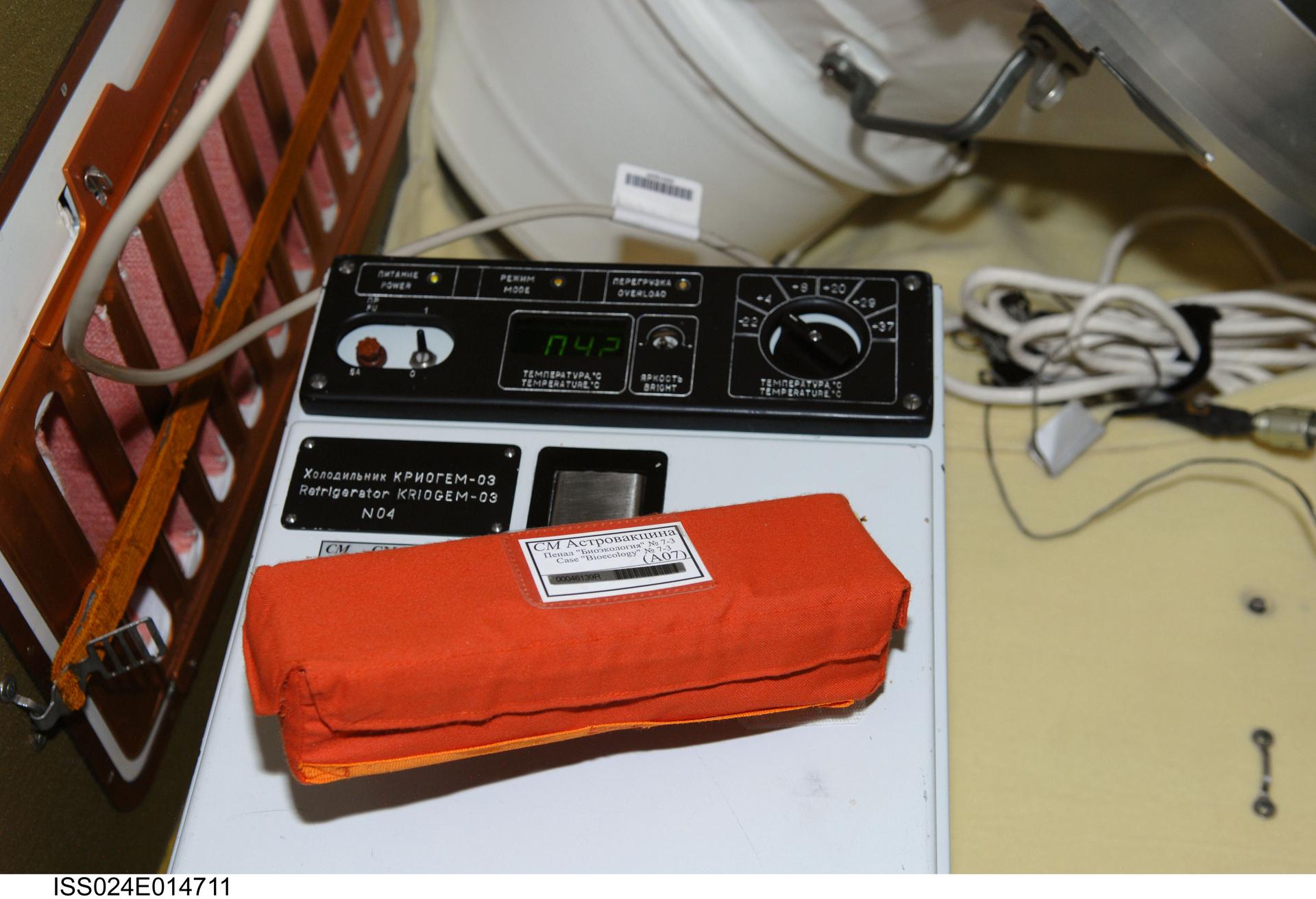iss024e014711 (9/15/2010) --- A view of a Bioecology Case containing a stowed BTKh-27 ASTROVAKTSINA (Astrovaccine) payload aboard the International Space Station (ISS). The Cultivating Escheria coli Producer of CAF1 Protein in Weightlessness (Astrovaktsina) studies the effect of spaceflight factors on the processes of biosynthesis, secretion, capsule formation, and the biological properties of the E. coli producer of the genetically engineered CAF1 antigen protein of Yersinia pestis during its exposure to microgravity.