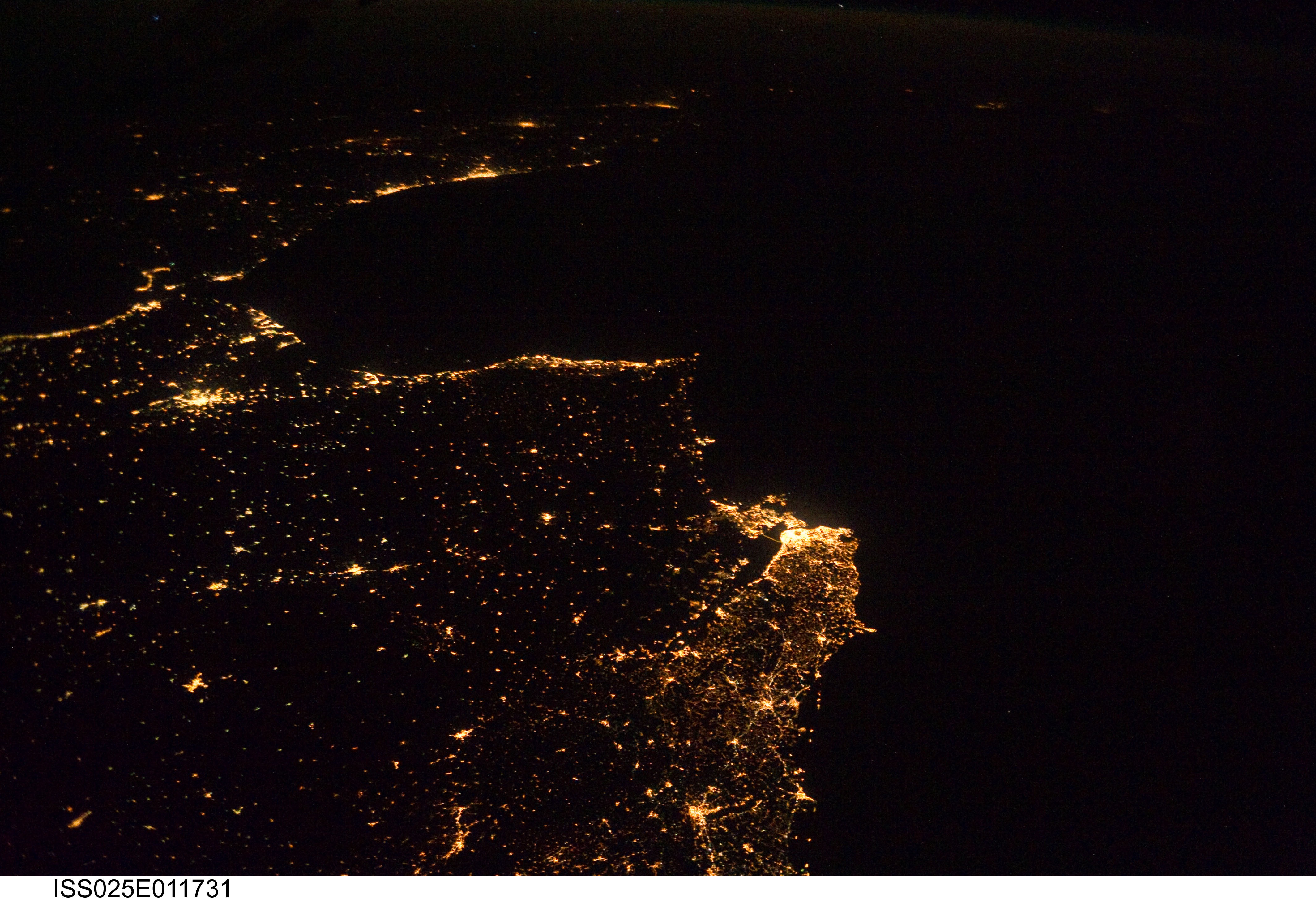 ISS025-E-011731 (5 Nov. 2010) --- One of the Expedition 25 crew members aboard the International Space Station, 220 miles above Earth, took this night time photo, looking south along the Atlantic coast of Europe and into Africa, from Lisbon, Portugal south across the Strait of Gibraltar. The lights can be followed down the coast of Morocco to Casablanca, and beyond.