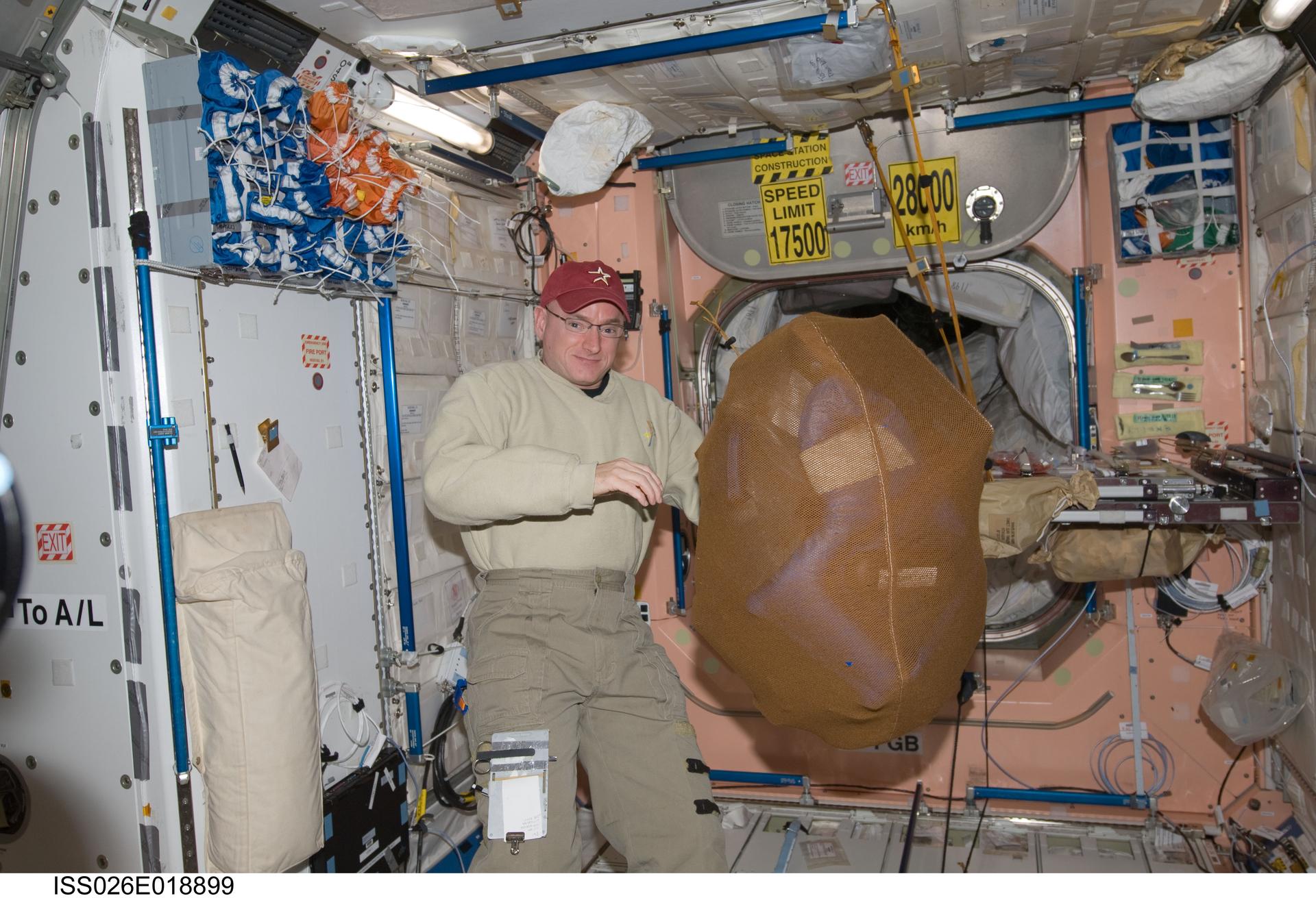 ISS026-E-018899 (21 Jan. 2011) --- NASA astronaut Scott Kelly, Expedition 26 commander, is pictured near a stowage bag floating freely in the Unity node of the International Space Station.