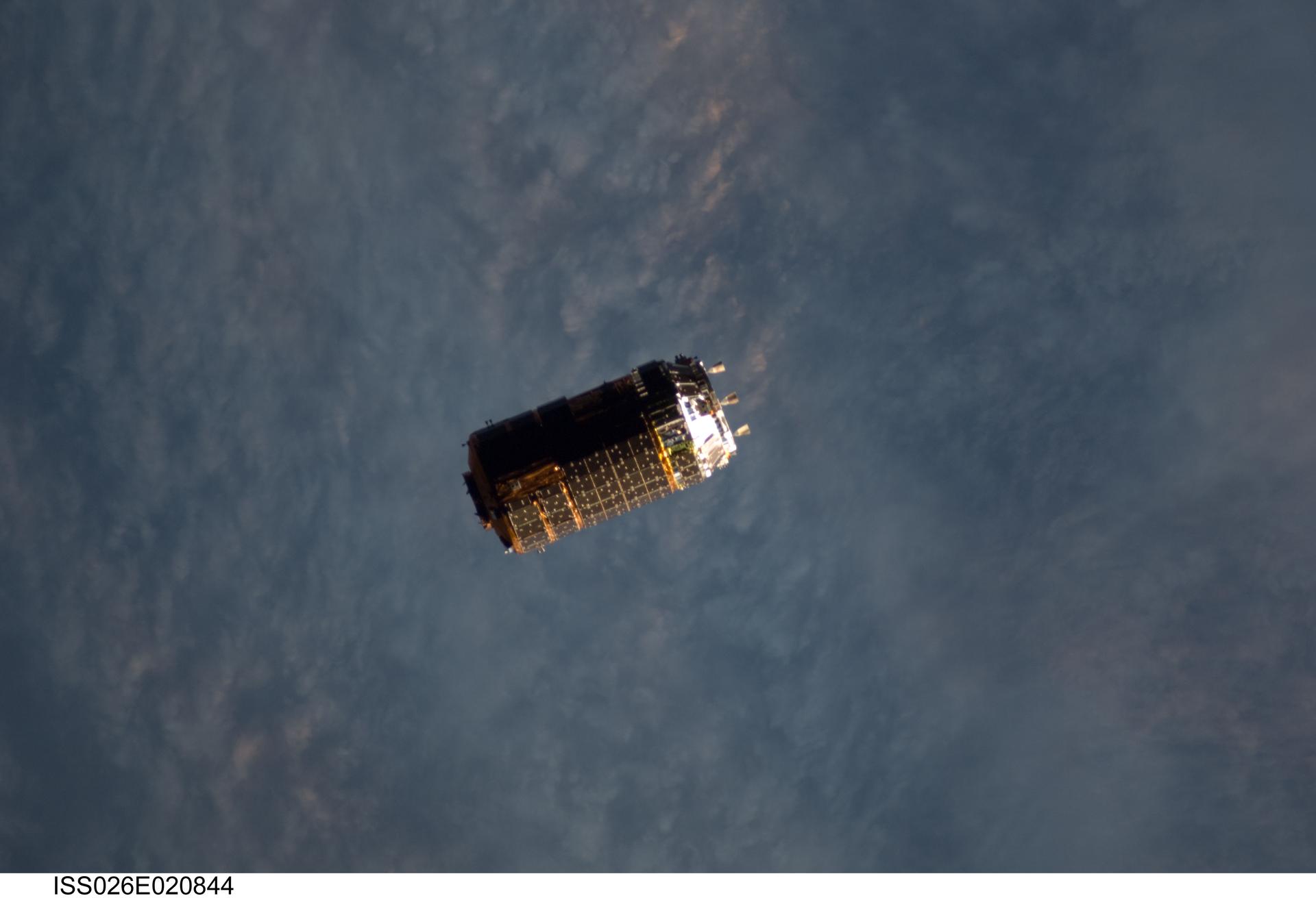 ISS026-E-020844 (27 Jan. 2011) --- The unpiloted Japanese Kounotori2 H-II Transfer Vehicle (HTV2) approaches the International Space Station. The Japan Aerospace Exploration Agency (JAXA) launched HTV2 aboard an H-IIB rocket from the Tanegashima Space Center in southern Japan at 12:37 a.m. (EST) (2:27 p.m. Japan time) on Jan. 22, 2011. HTV2 is the second unpiloted cargo ship launched by JAXA to the station and will deliver more than four tons of food and supplies to the station and its crew members.