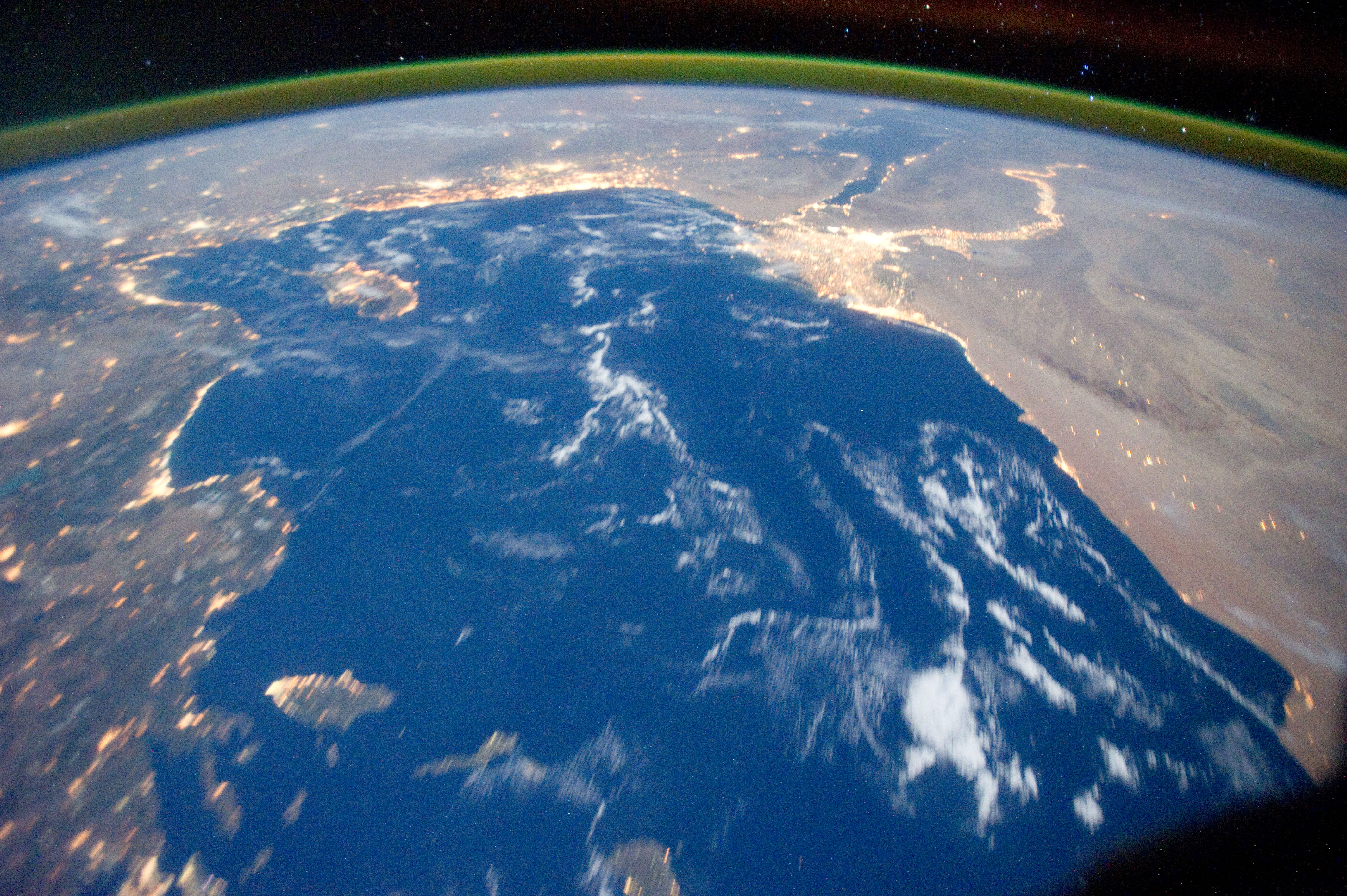 ISS029-E-031143 (15 Oct. 2011) --- One of the Expedition 29 crew members aboard the International Space Station recorded this oblique view showing the Mediterranean Sea area, including parts of Turkey, the Nile River and the river's delta, and the Sinai Peninsula, on Oct. 15, 2011. At first look, the image appears to have been photographed in daylight, but actually it was taken at 01:01:26 GMT. Some areas of the photo like the river and river delta appear as the brightest areas because of either man-made lighting (mostly incandescent) or man-made lighting reflected off nearby surfaces. The other areas appear to be illuminated naturally by moonlight, starlight, or back-scattered light from the atmosphere. A 20-mm focal length was used to record the image.