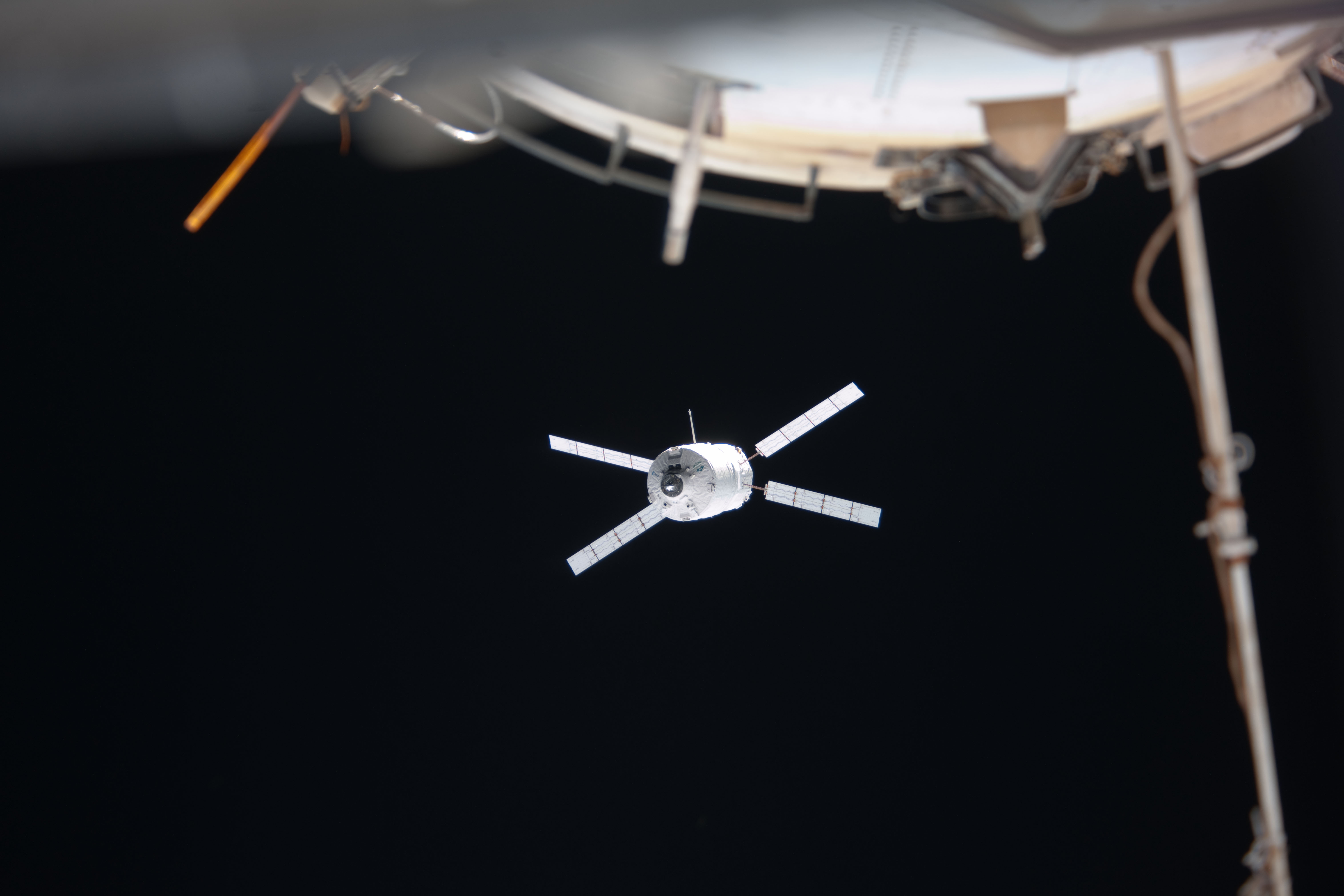 ISS030-E-174970 (28 March 2012) --- European Space Agency?s ?Edoardo Amaldi? Automated Transfer Vehicle-3 (ATV-3) approaches the International Space Station. The unmanned cargo spacecraft docked to the space station at 6:31 p.m. (EDT) on March 28, 2012, delivering 220 pounds of oxygen, 628 pounds of water, 4.5 tons of propellant, and nearly 2.5 tons of dry cargo, including experiment hardware, spare parts, food and clothing.