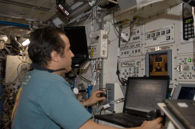 ISS032-E-014904 (9 Aug. 2012) --- NASA astronaut Joe Acaba, Expedition 32 flight engineer, works the controls of the Japanese Experiment Module Remote Manipulator System (JEMRMS) in the Kibo laboratory of the International Space Station.