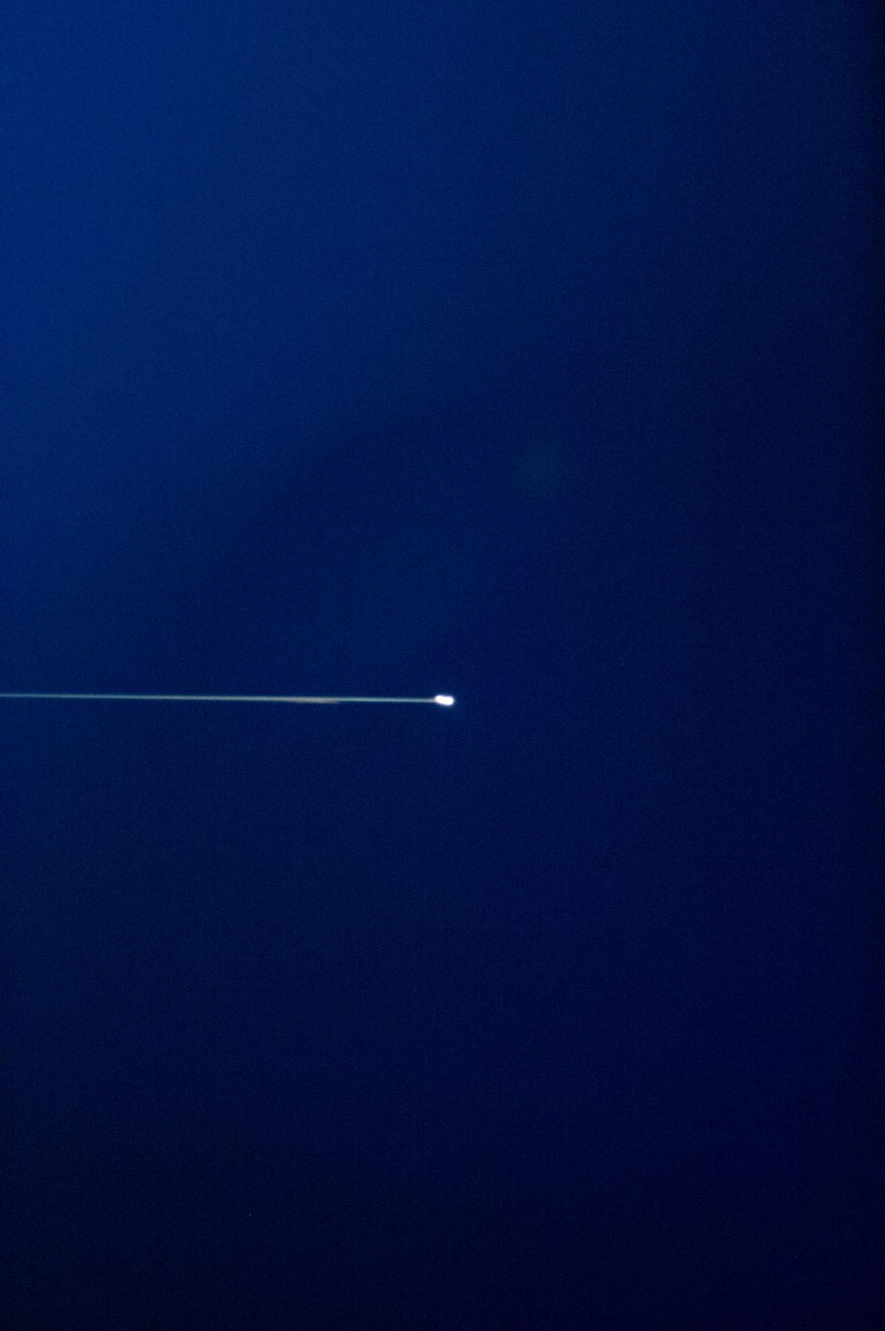 ISS034-E-005049 (18 Nov. 2012) --- Soyuz TMA-05M (descent module) beginning to re-enter the Earth's atmosphere on Nov. 19 (real time, Nov. 18, U.S. time) leaving a plasma trail as the Expedition 33 crew streaked toward a pre-dawn landing on the steppe of Kazakhstan northeast of Arkalyk.