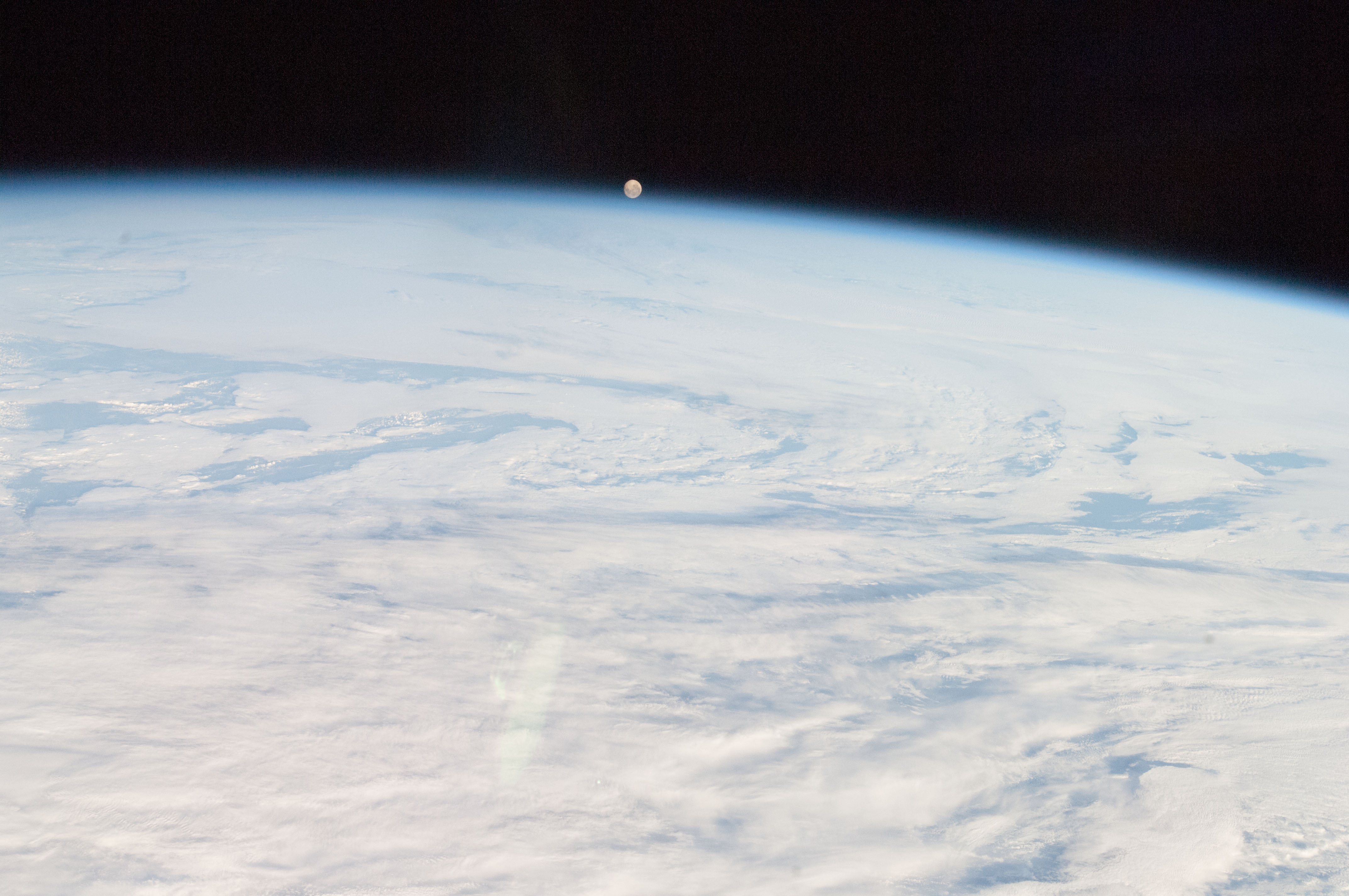 Lunar observation taken by the Expedition 35 crew aboard the ISS. An Earth limb is in view.