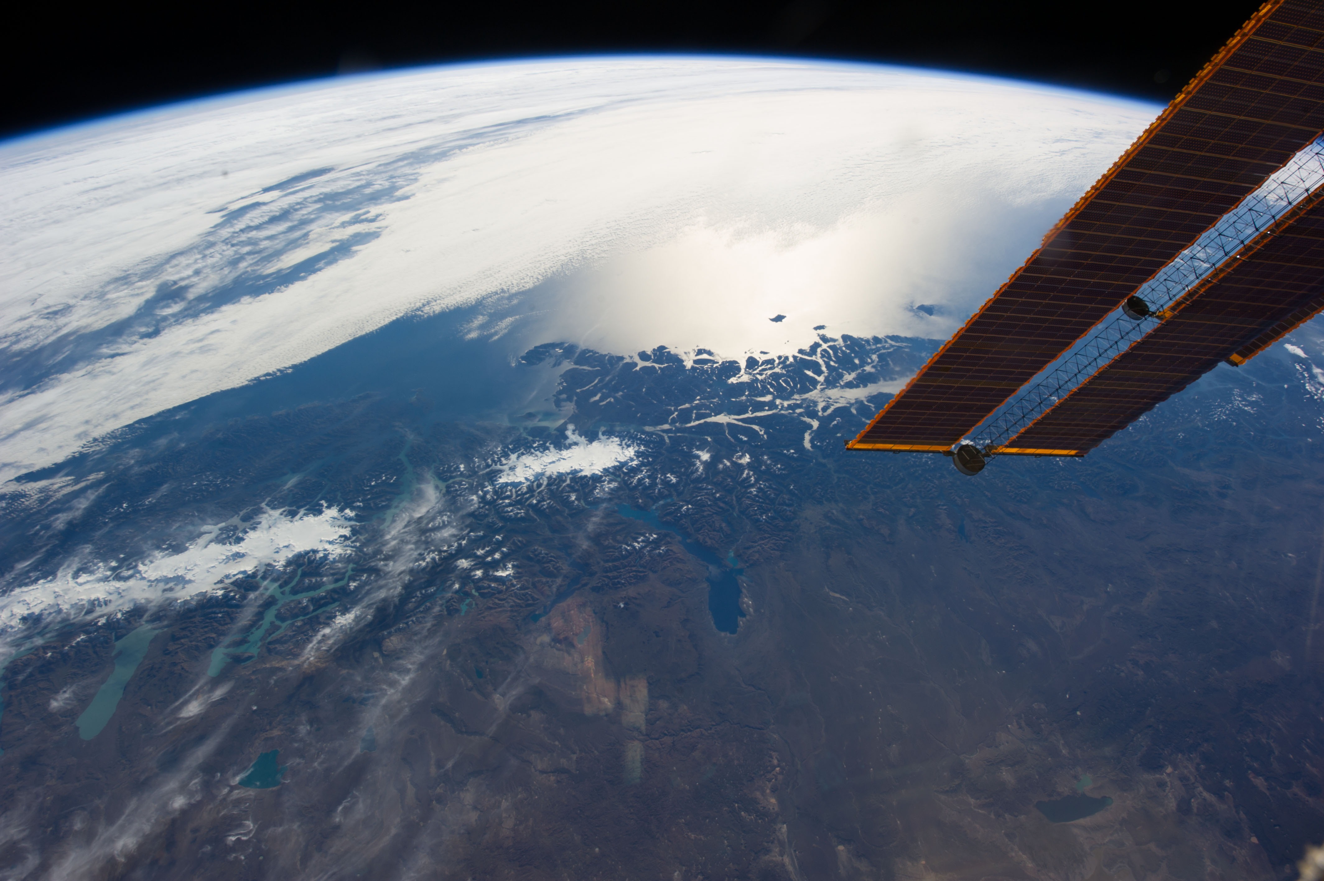 Earth observation taken by the Expedition 35 crew aboard the ISS. Portions of ISS solar array wings (SAWs) are in view.