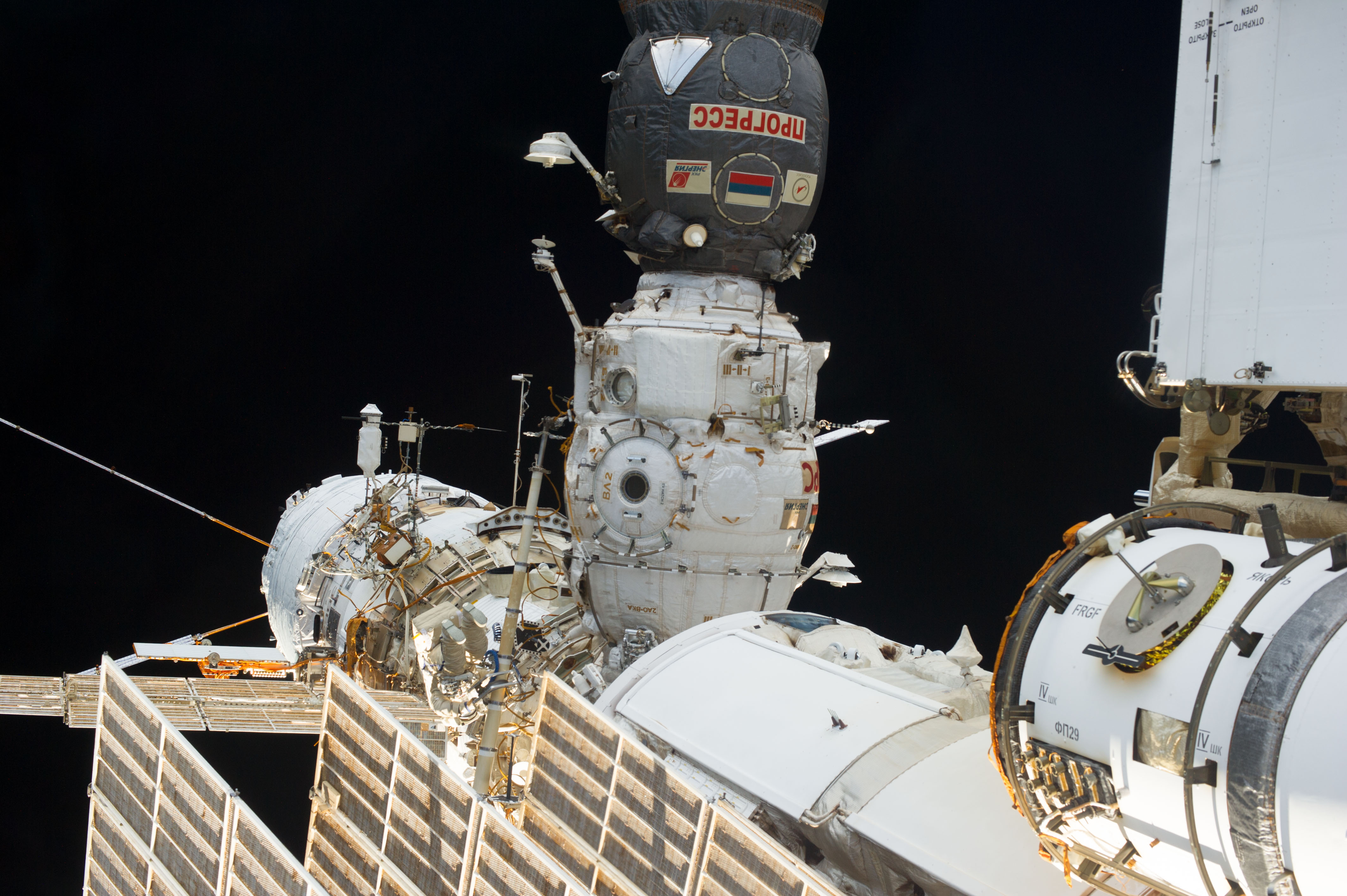 ISS036-E-011747 (24 June 2013) --- Russian cosmonaut Alexander Misurkin (bottom center), Expedition 36 flight engineer, participates in a session of extravehicular activity (EVA) as work continues on the International Space Station. During the six-hour, 34-minute spacewalk, Misurkin and Russian cosmonaut Fyodor Yurchikhin (out of frame), Expedition 36 flight engineer, replaced an aging fluid flow control panel on the station's Zarya module as preventative maintenance on the cooling system for the Russian segment of the station. They also installed clamps for future power cables as an early step toward swapping the Pirs airlock with a new multipurpose laboratory module. The Russian Federal Space Agency plans to launch a combination research facility, airlock and docking port late this year on a Proton rocket. Yurchikhin and Misurkin also retrieved two science experiments and installed a new one.