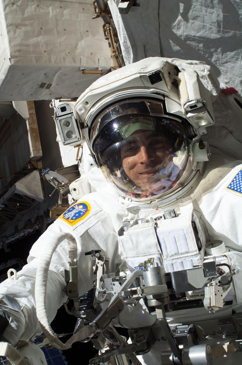 ISS036-E-019658 (16 July 2013) --- NASA astronaut Chris Cassidy, Expedition 36 flight engineer, participates in a session of extravehicular activity (EVA) as work continues on the International Space Station. A little more than one hour into the spacewalk, European Space Agency astronaut Luca Parmitano (out of frame) reported water floating behind his head inside his helmet. The water was not an immediate health hazard for Parmitano, but Mission Control decided to end the spacewalk early.