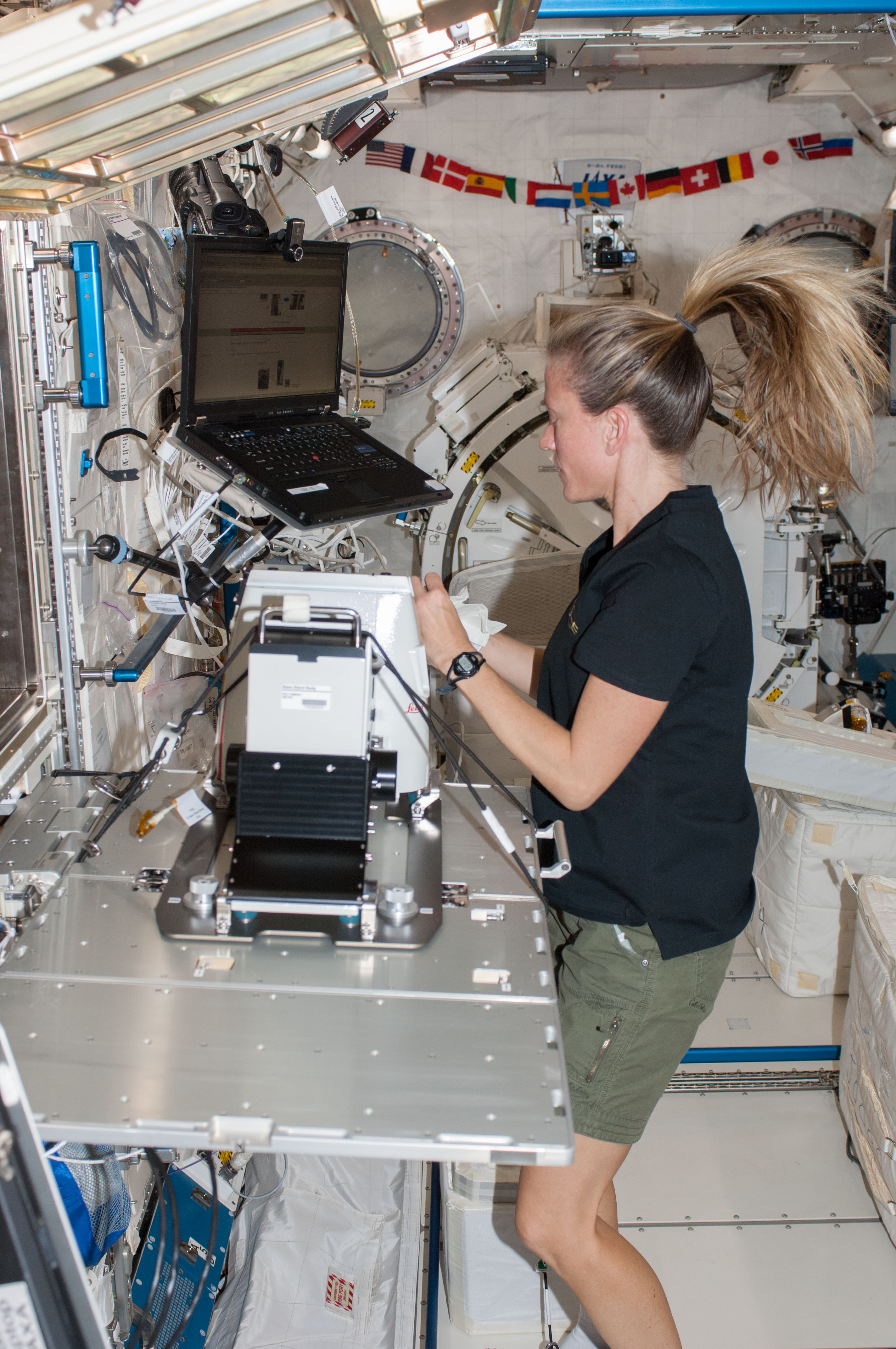 ISS036-E-020935 (17 July 2013) --- NASA astronaut Karen Nyberg, Expedition 36 flight engineer, works to setup the Multi-Purpose Small Payload Rack (MSPR) fluorescence microscope in the Kibo laboratory of the International Space Station. This configuration, along with the leak checks that the crew performed in June, is in preparation for the Aniso Tubule experiment launching on HTV-4 in August. Aniso Tubule will investigate the role of cortical microtubules and microtubule-associated proteins in plant growth while in microgravity.