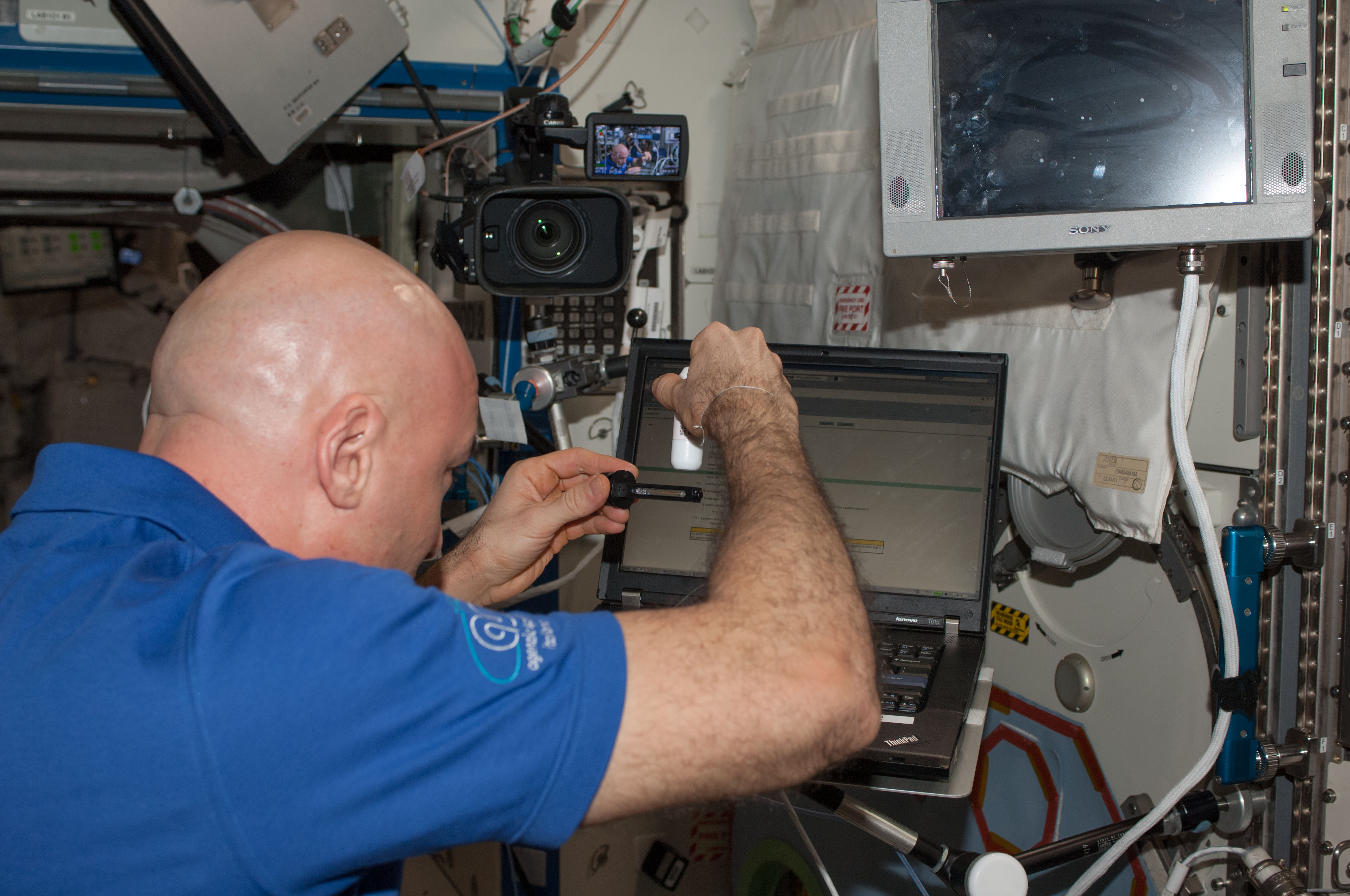 ISS037-E-010695 (14 Oct. 2013) --- European Space Agency astronaut Luca Parmitano, Expedition 37 flight engineer, works with the Investigating the Structure of Paramagnetic Aggregates from Colloidal Emulsions - 3 (InSPACE-3) experiment in the Destiny laboratory of the International Space Station.