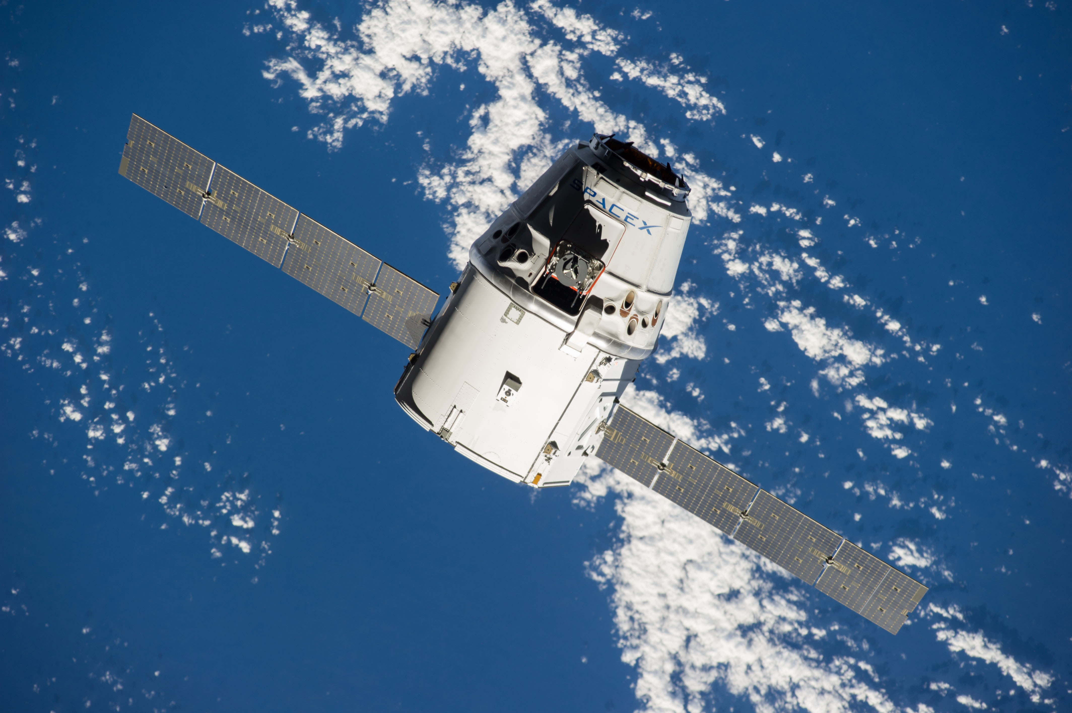 ISS041-E-020857 (23 Sept. 2014) --- The SpaceX Dragon commercial cargo craft approaches the International Space Station on Sept. 23, 2014 for grapple and berthing. European Space Agency astronaut Alexander Gerst and NASA astronaut Reid Wiseman, both Expedition 41 flight engineers, were at the controls of the robotics workstation in the Cupola when the Canadarm2 grappled Dragon at 6:52 a.m. (EDT). Dragon will spend the next four weeks attached to the Harmony node as the Expedition 41 crew unloads 4,885 pounds of (2,216 kg) crew supplies, hardware, experiments, and computer gear and spacewalk equipment.