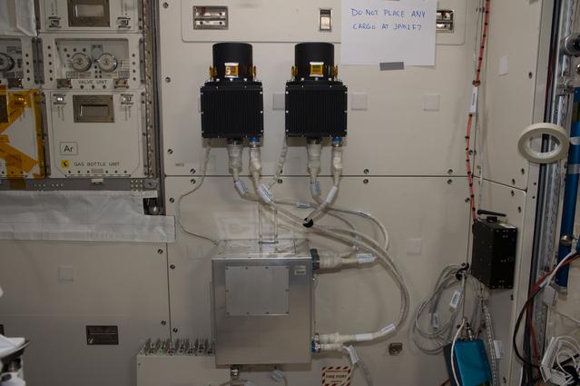 iss050e016008 (12/14/2016) --- A view during Position Sensitive-Tissue Equivalent Proportional Chamber (PS-TEPC) Installation aboard the International Space Station (ISS) The PS-TEPC is a radiation measuring instrument that measures absorbed doses and path length of space radiation particles simultaneously, and determines the real time Liner Energy Transfer (LET), and equivalent doses, to assess radiation risk to crew members during space flight. Bio Dosimeters are also visible.