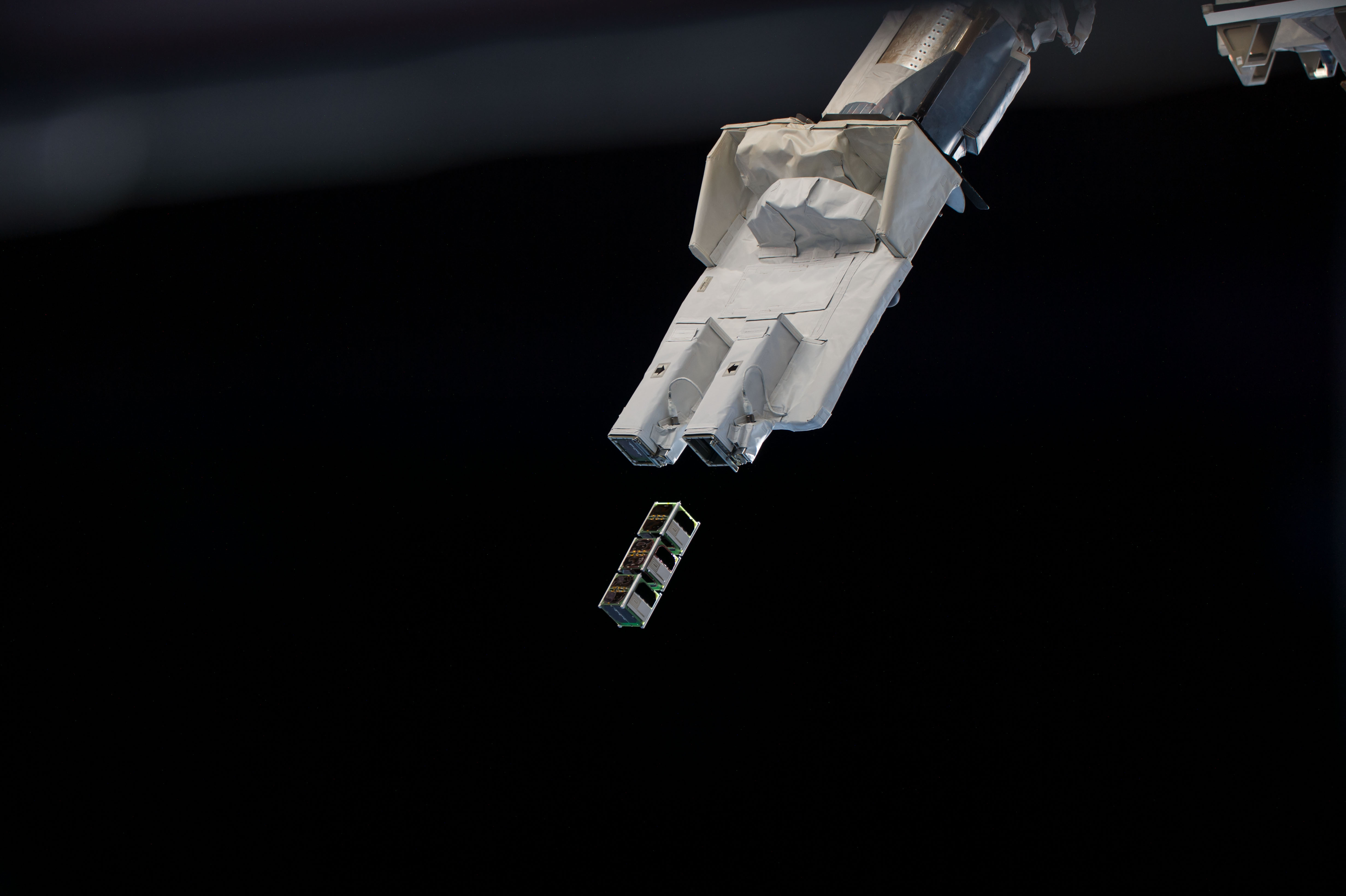 iss052e011185 (7/7/2017) --- A view taken of CubeSats from Japan, Ghana, Mongolia, Bangladesh and Nigeria deployed from the Japanese Experiment Module (JEM) Satellite Orbital Deployer 7 (J-SSOD 7) (with Earth visible in the background). These satellites are part of the Joint Global Multi-Nation Birds Satellite project (BIRDS-1), a cross-border interdisciplinary satellite project for non-space faring countries supported by Japan. During this 2-year project, students from the Graduate School of Engineering of the Kyushu Institute of Technology design, develop and operate CubeSats belonging to the five participating countries.
