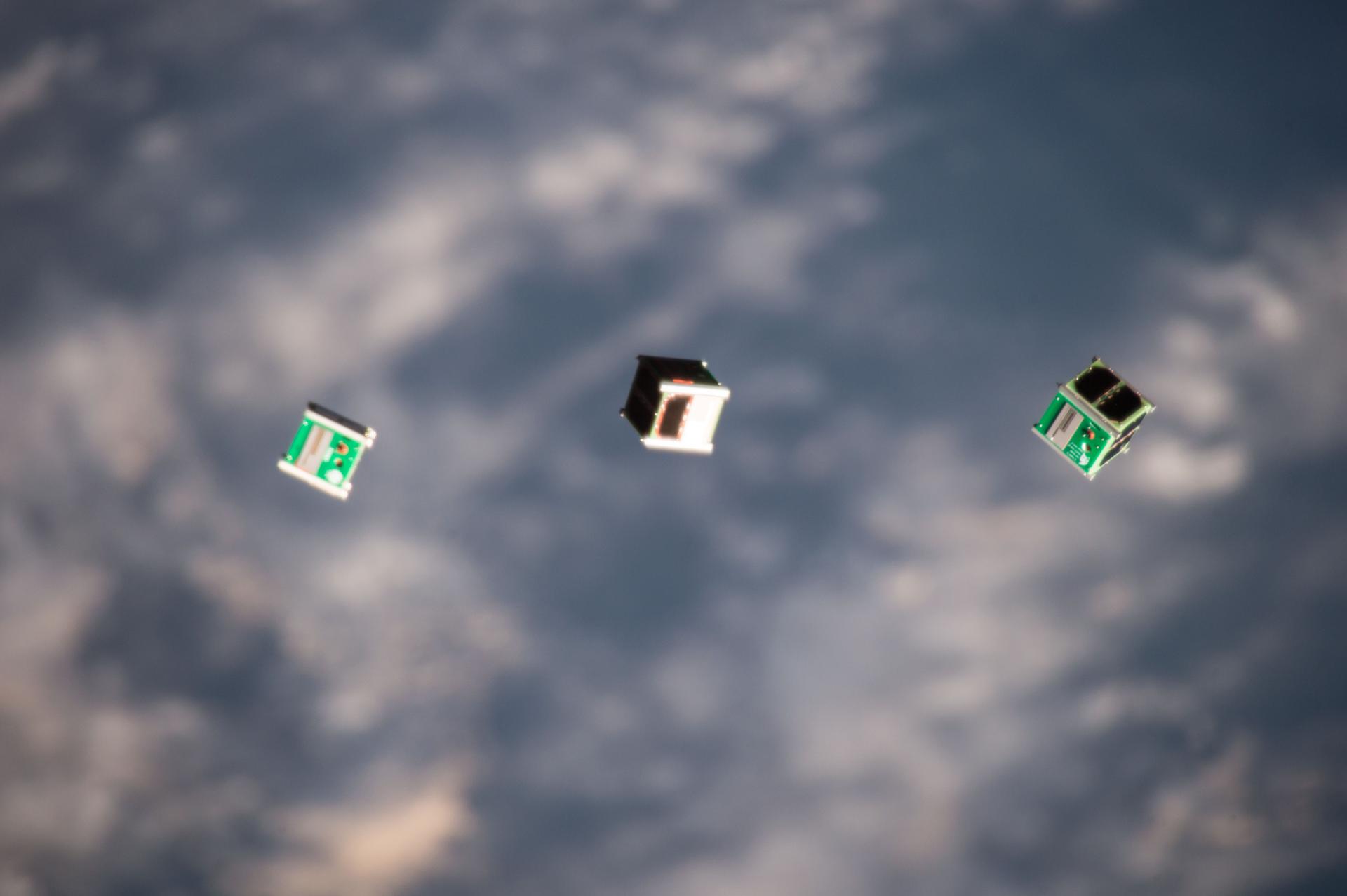 iss052e011217 (7/7/2017) --- A view taken of CubeSats from Japan, Ghana, Mongolia, Bangladesh and Nigeria deployed from the Japanese Experiment Module (JEM) Satellite Orbital Deployer 7 (J-SSOD 7) (with Earth visible in the background). These satellites are part of the Joint Global Multi-Nation Birds Satellite project (BIRDS-1), a cross-border interdisciplinary satellite project for non-space faring countries supported by Japan. During this 2-year project, students from the Graduate School of Engineering of the Kyushu Institute of Technology design, develop and operate CubeSats belonging to the five participating countries.