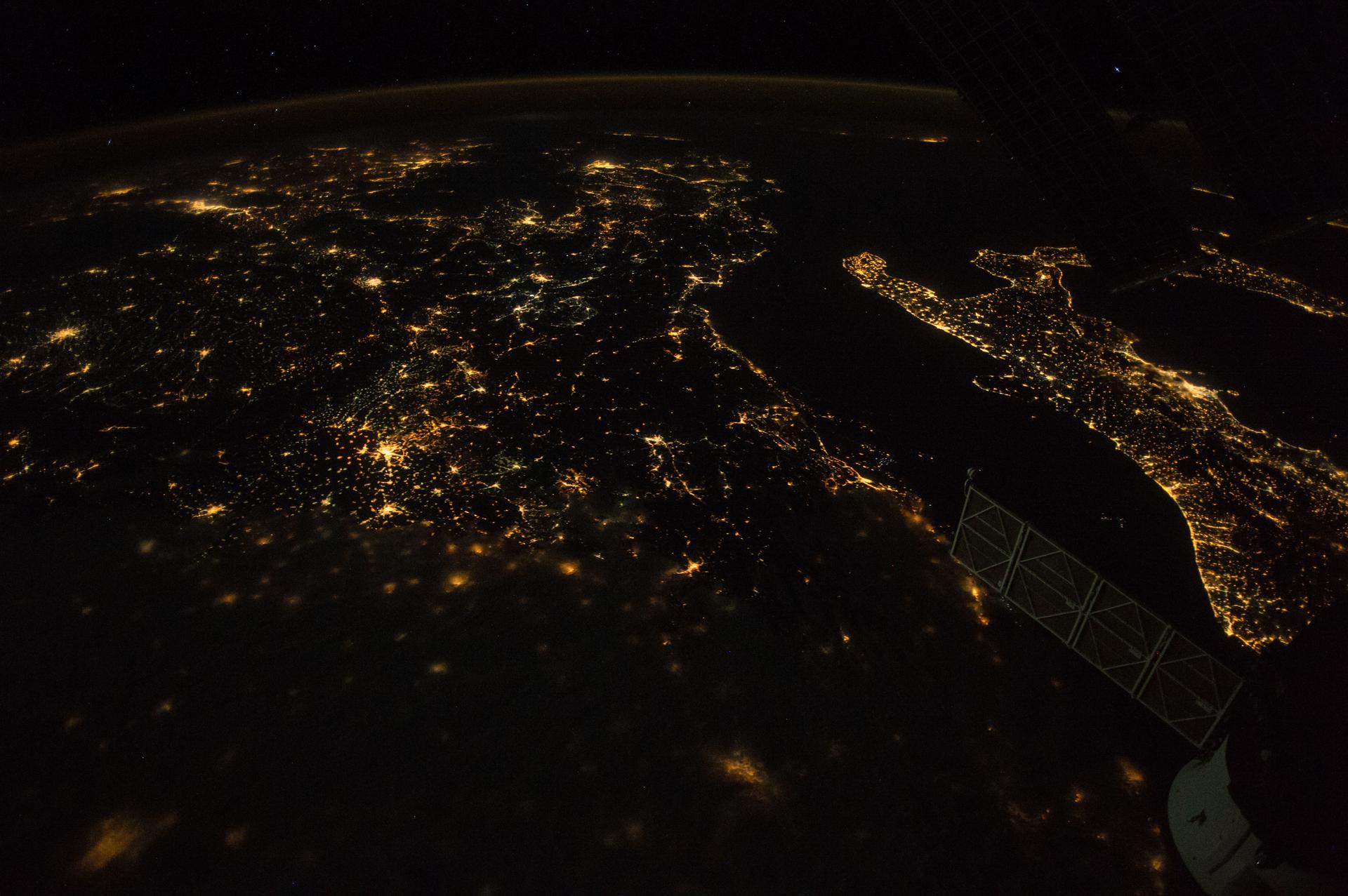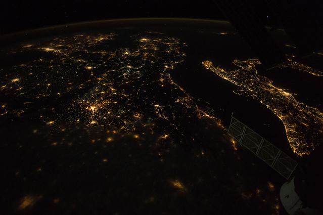 iss053e021852 (Sept. 15, 2017) --- This night time view of southern Europe prominently features the “boot” of Italy, the home of current Expedition 53 crew member Paolo Nespoli of the European Space Agency.