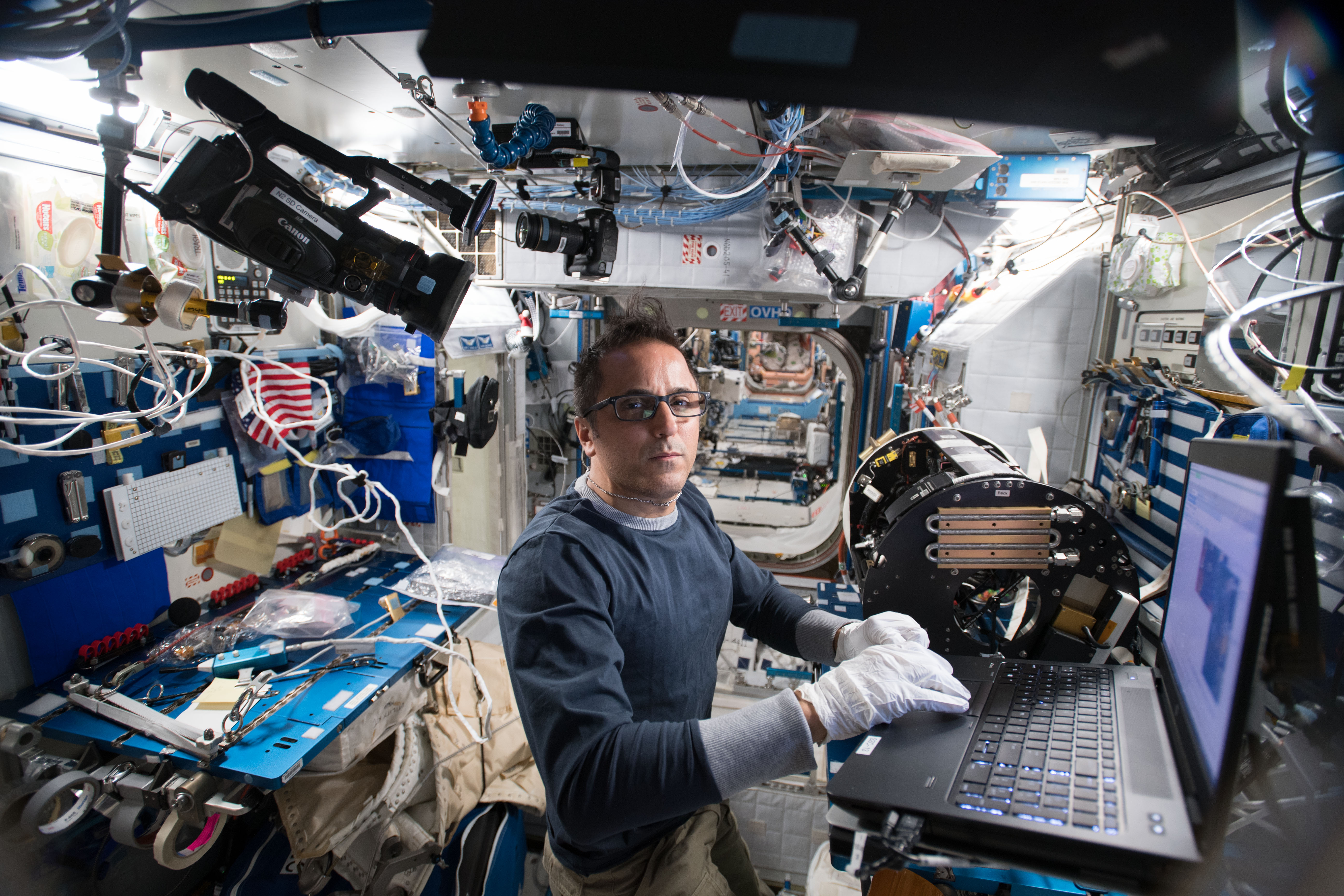 iss054e014673 (Jan. 5, 2018) --- Astronaut Joe Acaba works on wire connections and other maintenance tasks inside Combustion Integrated Rack gear.