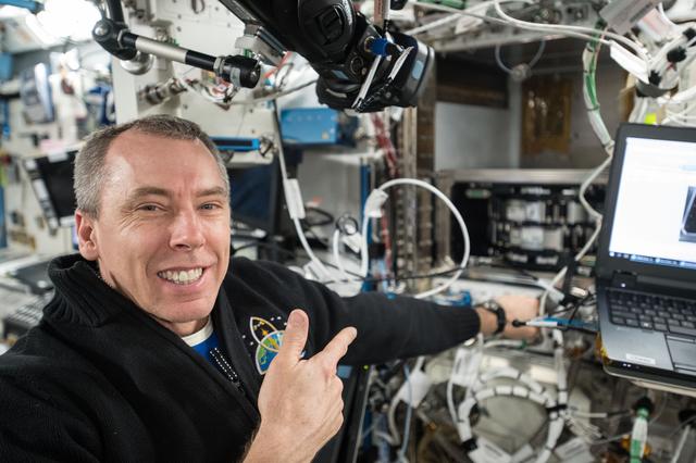 iss055e018689 (April 11, 2018) --- NASA astronaut Drew Feustel conducts science operations using the Multi-Use Variable-G Platform that enables research into smaller and microscopic organisms.