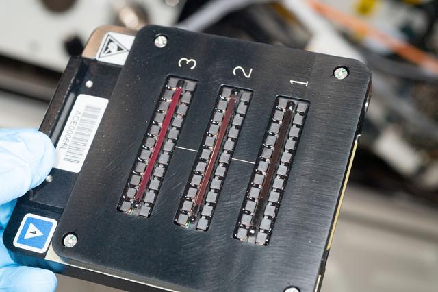 iss059e101463 (6/12/2019) --- Photo documentation aboard the International Space Station (ISS) of the ACE Modules taken during the ACE-T10 Module Configuration. The Advanced Colloids Experiment-Temperature-10 (ACE-T-10) investigates the growth kinetics, microscopic dynamics, and restructuring processes in ordered and disordered structures such as colloidal crystals, glasses and gels. The investigation studies crystal nucleation in colloidal fluids, the origin of ageing in glasses and gels, as well as the heterogeneous nature of the microscopic dynamics in these structures. The study must be conducted in microgravity, as gravitational stresses affect the structure and growth of these solids from colloids.