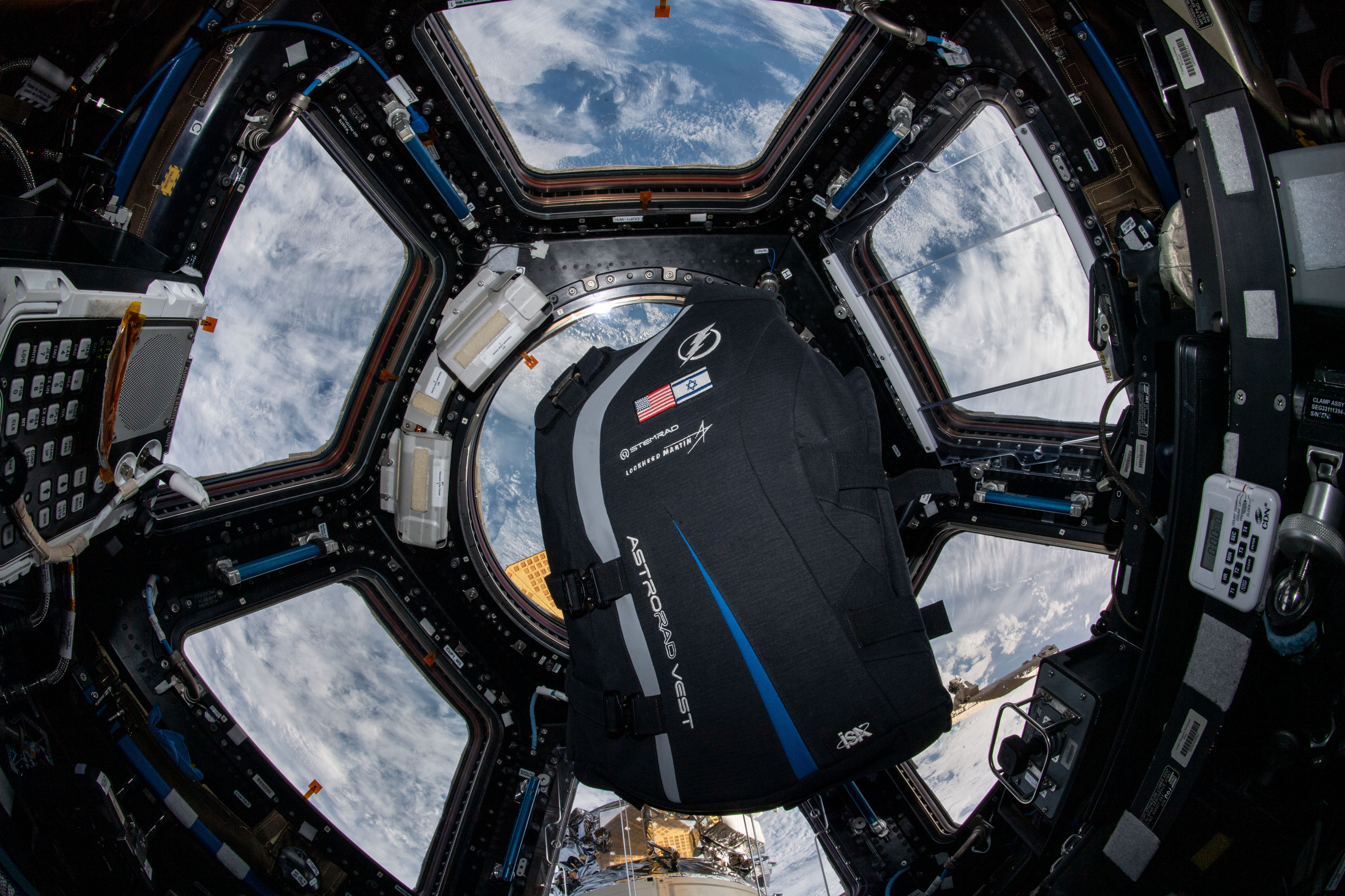 ss061e145988 --- (1/28/2020) A view to the AstroRad Vest in the Cupola module aboard the International Space Station (ISS). AstroRad Vest was developed to mitigate radiation threats to crew members on missions to the Moon and Mars.