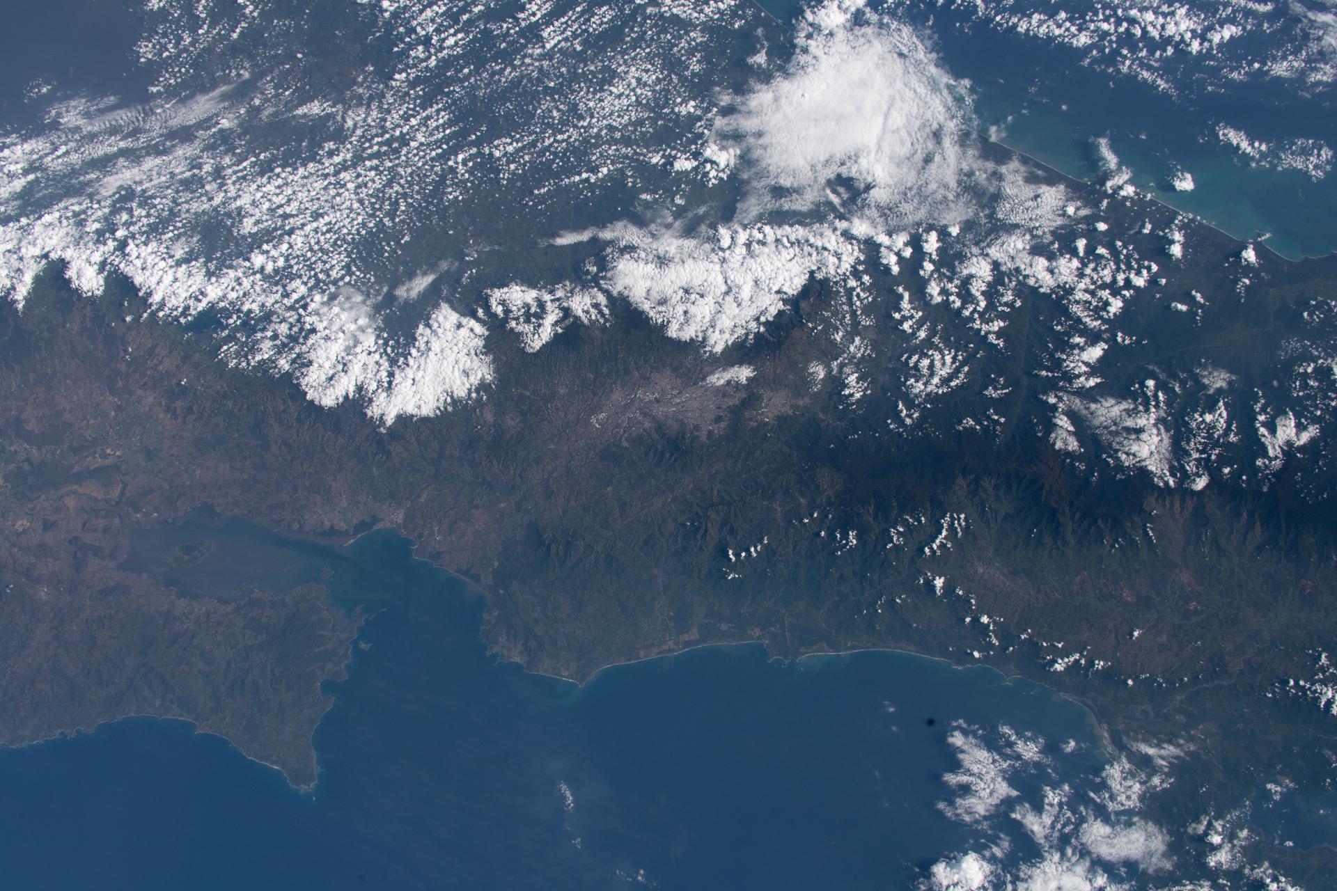 ISS062e1866 (2/8/2020) — Earth observation photograph of Costa Rica taken during day pass by the Expedition 62 crew aboard the International Space Station (ISS). The image includes the the capital San Jose, Gulf of Nicoya , and the Tilmaran Mountains.