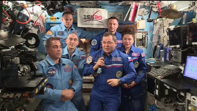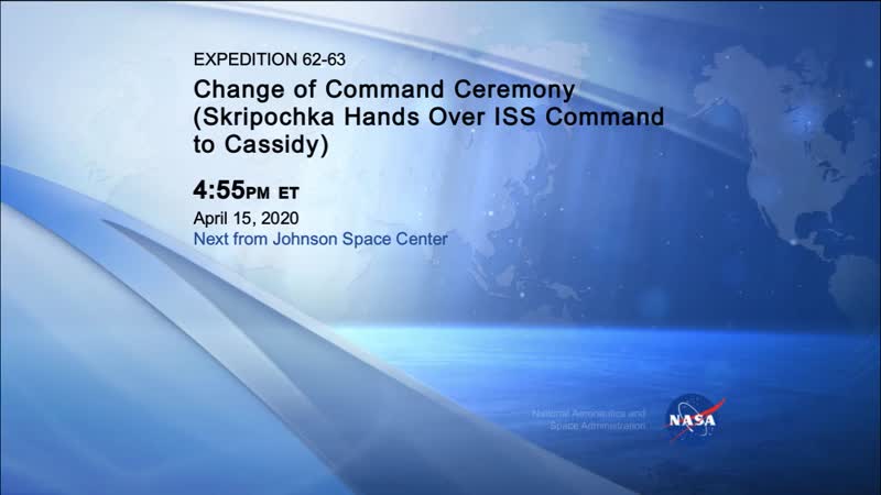 Expedition 62 Crew Hands over Space Station to Expedition 63 Command of the International Space Station was passed from Russian cosmonaut Oleg Skripochka of Roscosmos to Chris Cassidy of NASA during a ceremony on the orbital outpost on April 15. Skripochka is returning to Earth April 17 with Expedition 62 crewmates Andrew Morgan and Jessica Meir in the Soyuz MS-15 spacecraft for a landing on the steppe of Kazakhstan. Skripochka and Meir will have completed 205 days in space, while Morgan will have spent 272 in orbit. Cassidy remains on the station as commander of Expedition 63 with crewmates Anatoly Ivanishin and Ivan Vagner of Roscosmos.