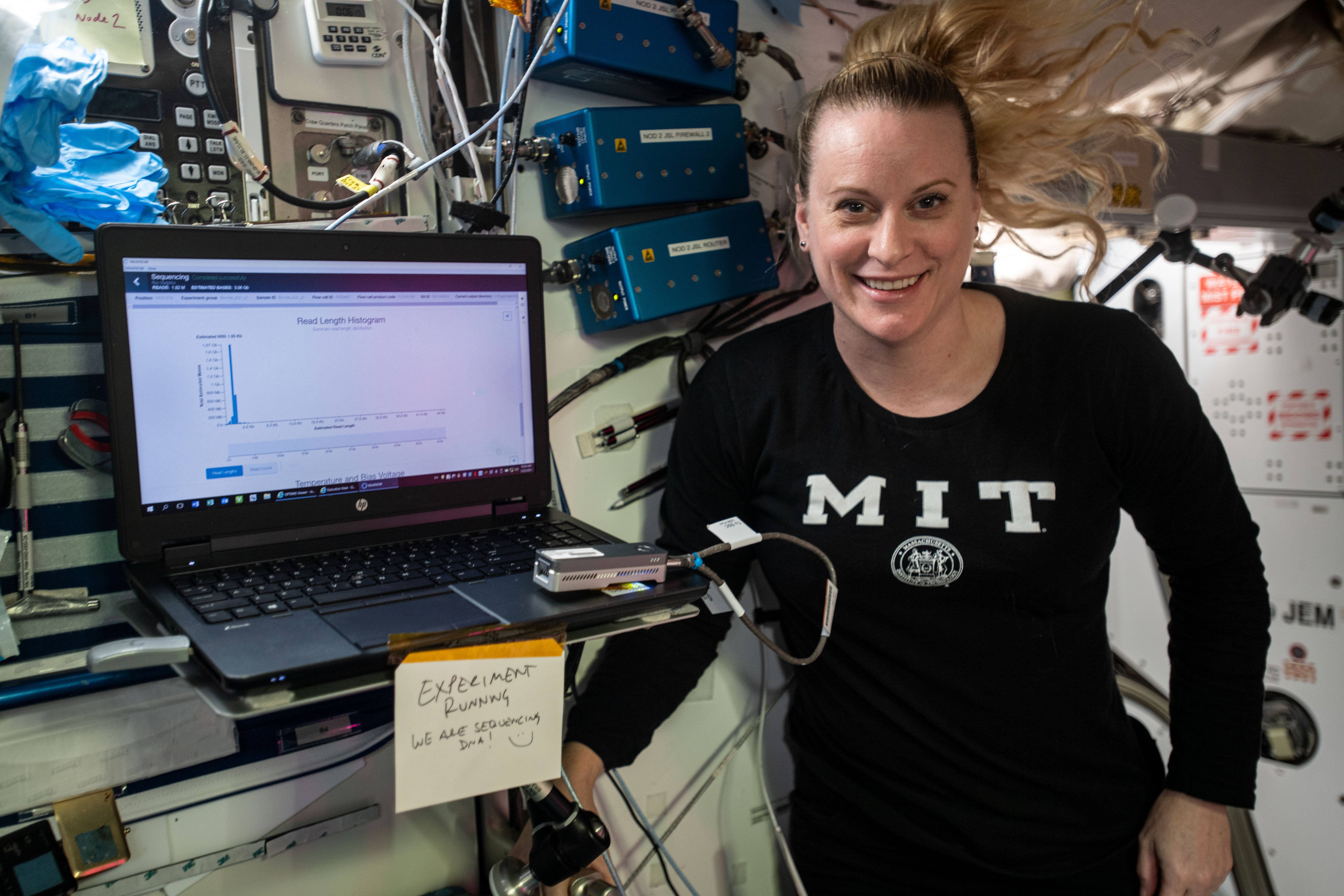 iss064e025418 (Jan. 21, 2021) --- NASA astronaut and Expedition 64 Flight Engineer Kate Rubins sequences DNA aboard the International Space Station for an experiment that seeks to diagnose medical conditions and identify microbes. Learn more about the first sequencing of DNA in space: https://go.nasa.gov/2VPsQFJ